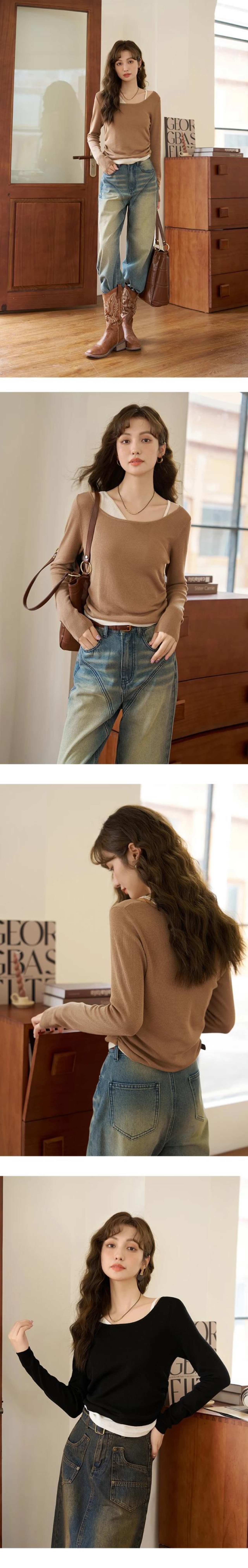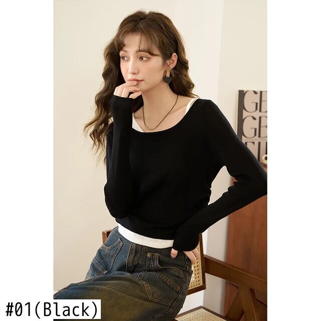 送料無料 MISHOW コントラストカラーニット偽 2 ボトムトップス女性スリムストリートウエストサイドシワデザイントップ MXC43Z0211 AE12125556677677676058446