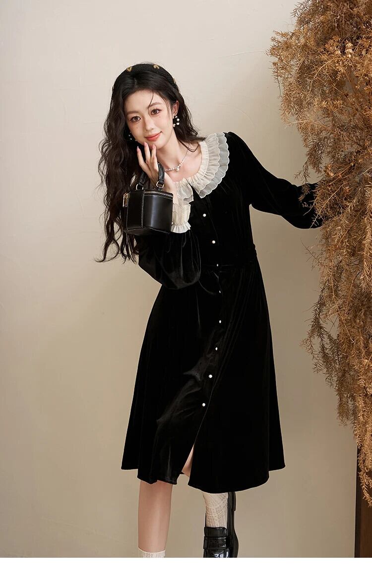 送料無料 MISHOW とかわいいレディースドレス 2023 秋冬フレンチヴィンテージボタンダウンヘップバーンスタイルベルベットドレス MXC51L1623 オータム 秋物 ウィンター 冬物 ビンテージ AE1212555667767885299165