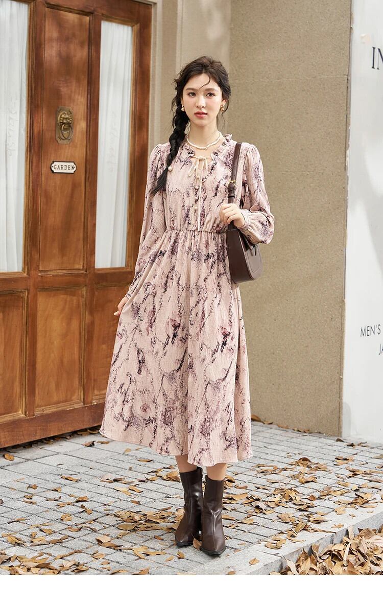 送料無料 MISHOW 女性のフレンチレトロ花柄ドレス 2023 秋シックな長袖レースアップフロントルーズミッドレングスドレス MXC51L1597 ロング オータム 秋物 AE12125556677627030925316
