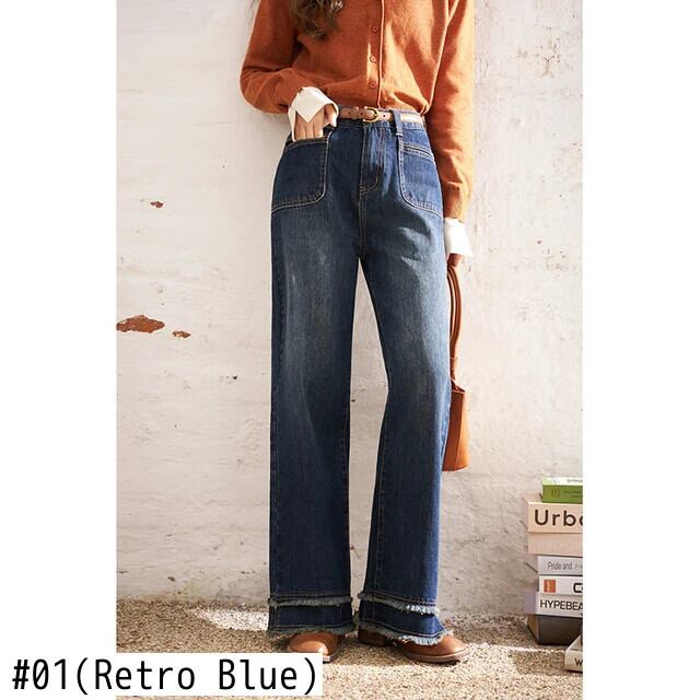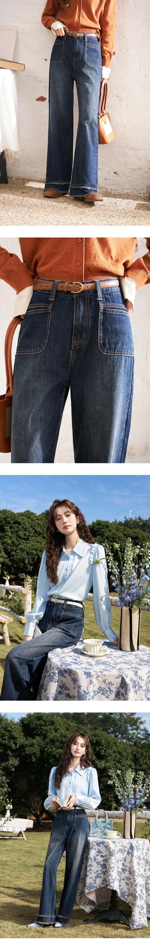 送料無料 MISHOW ウエストレトロジーンズ女性 2024 春裾二層生エッジポケットルーズワイドレッグパンツ MXD13K0533 スプリング 春物 AE12125556677648669691228