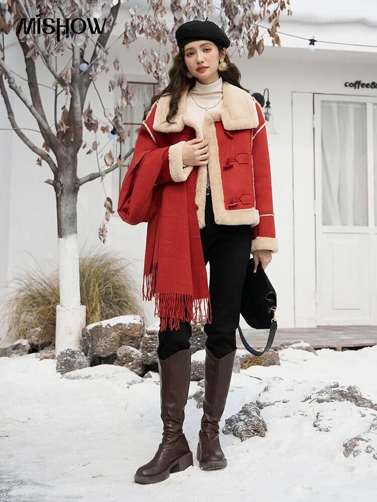 送料無料 MISHOW ショートフェイクファーコート女性の冬模造子羊ウールオートバイジャケットオフィス生き抜く MXC57W0284 ウィンター 冬物 会社 学校 通勤や通学にも AE12125556677616146068071