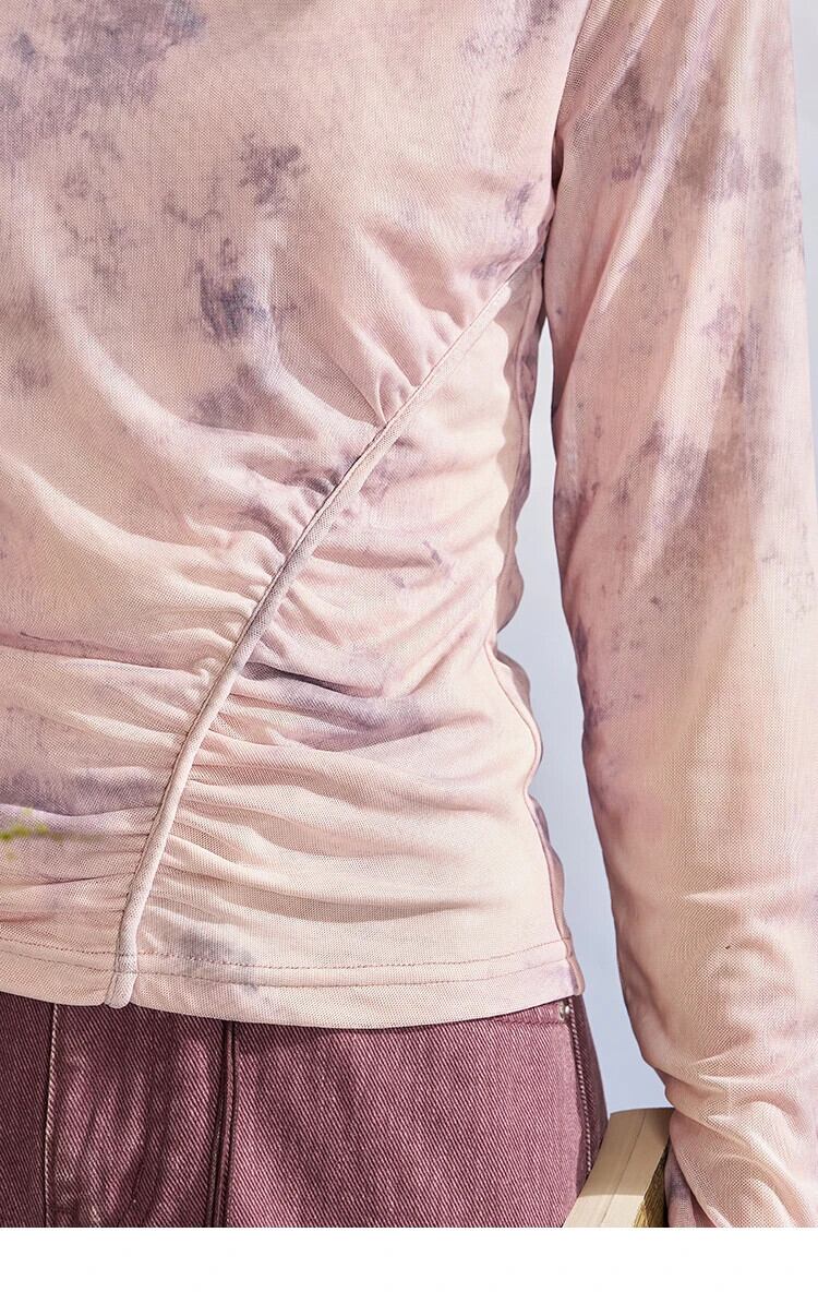 送料無料 MISHOW メッシュ長袖 Tシャツ女性春 2024 ウエストシャーリングフレアスリーブ O ネックレトロ花柄トップス MXD12X1330 ロング スプリング 春物 Oネック AE12125556677633329430230