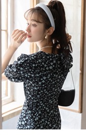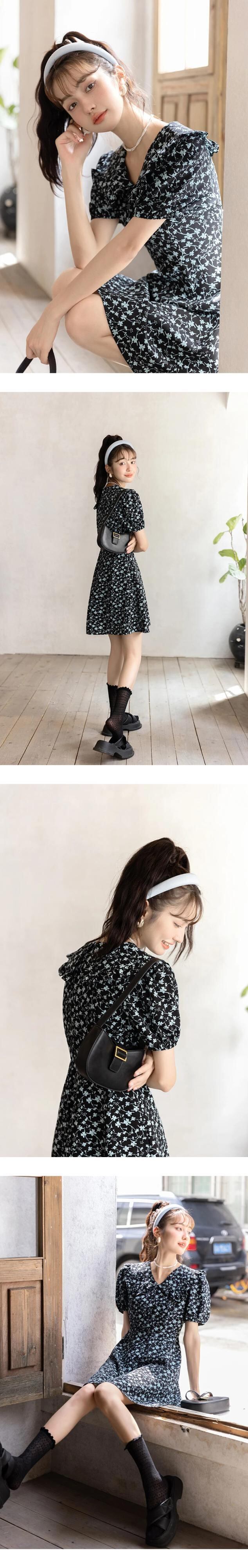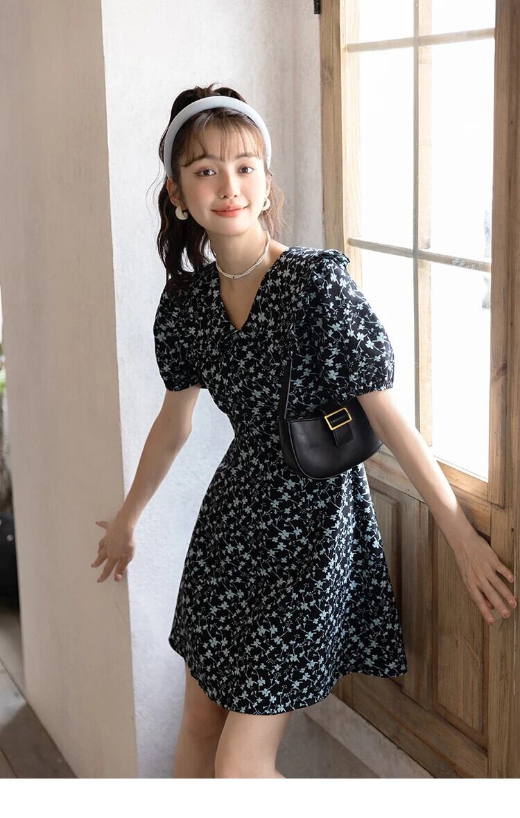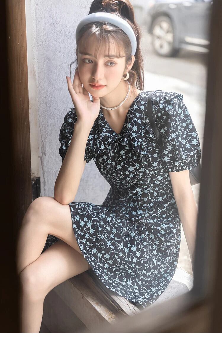 送料無料 MISHOW セクシーなドレスの女性の夏フレンチ V ネックパフスリーブウエスト膝上丈 A ラインジッパー花 Vestido MXB26L0999 サマー 夏物 花柄 Aライン AE12125556677656808138642