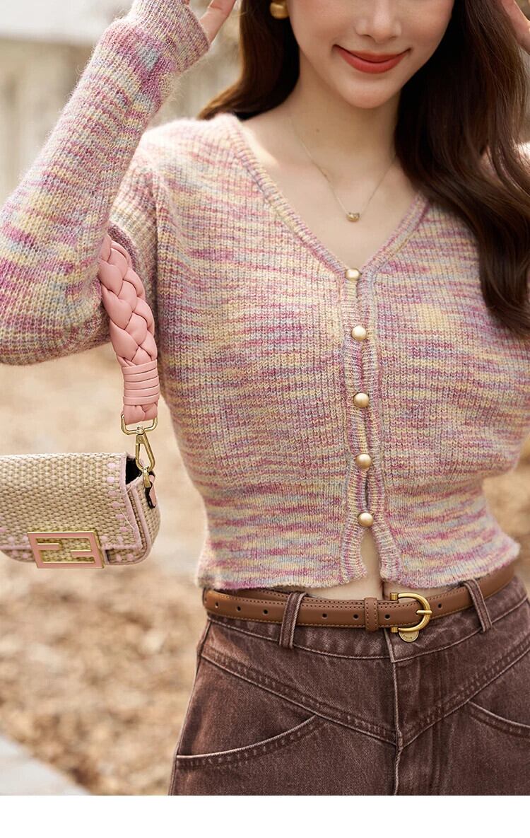 送料無料 MISHOW モヘアウールストライプニットトップス 2023 秋スリム V ネックメタルボタンシングルブレストストリートトップ MXC41Z0158 オータム 秋物 Vネック AE12125556677686393973944