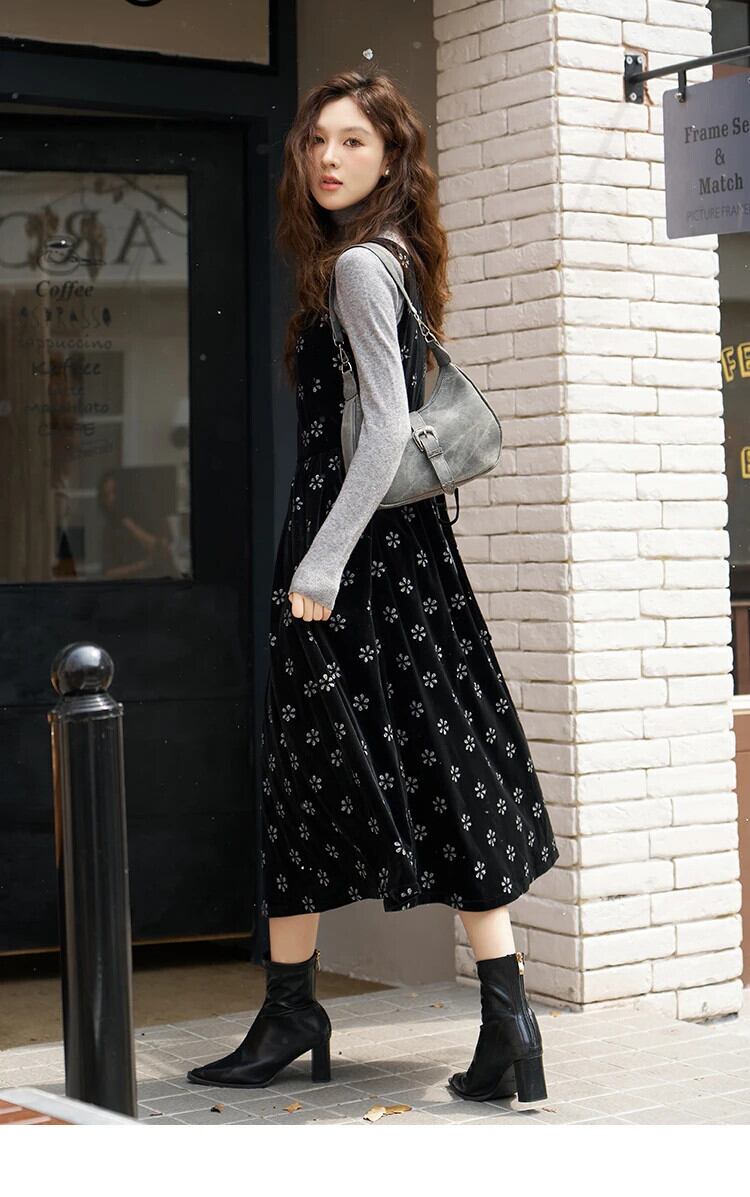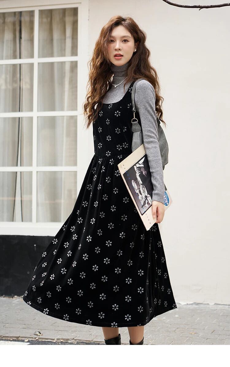 送料無料 MISHOW 女性のベルベットフラワープリントキャミソールドレス 2023 秋冬ウエストプリーツスリップドレスオフィスレディ MXC56L1626 オータム 秋物 ウィンター 冬物 フラワーデザイン 会社 学校 通勤や通学にも AE12125556677625175753774