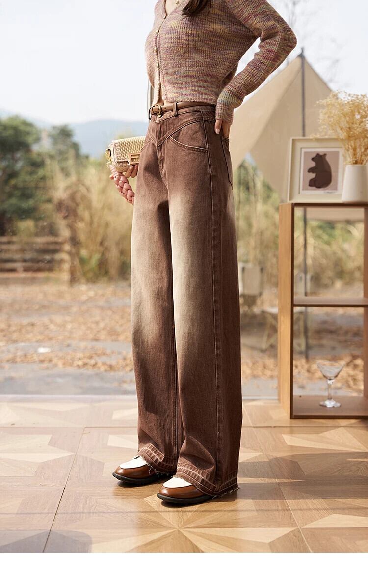 送料無料 MISHOW レディース 綿 100 ウエストジーンズ 2023 秋グラデーションストレートパンツポケットストレッチパンツ MXC44K0445 コットン オータム 秋物 AE12125556677650781197111
