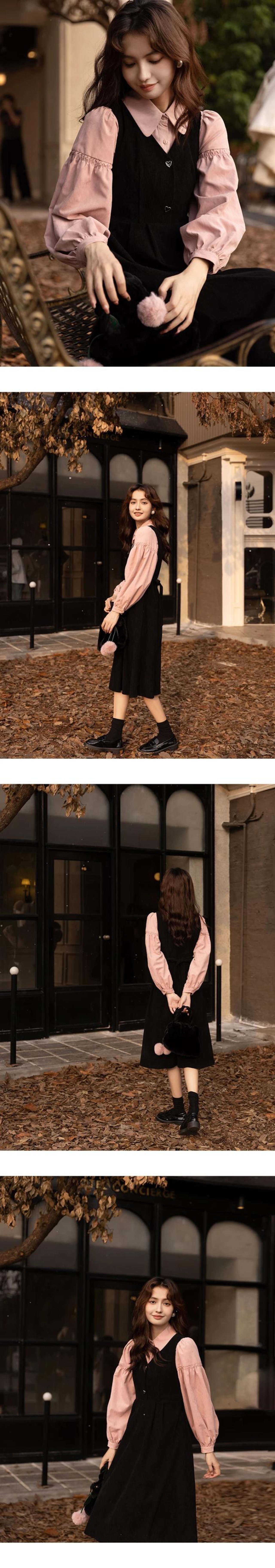 送料無料 MISHOW コーデュロイストラップドレス秋冬フレンチレトロ V ネックノースリーブミッドカーフドレス固体ブラウス MXB43L1246 オータム 秋物 ウィンター 冬物 ソリッドカラー AE1212555667767972784950