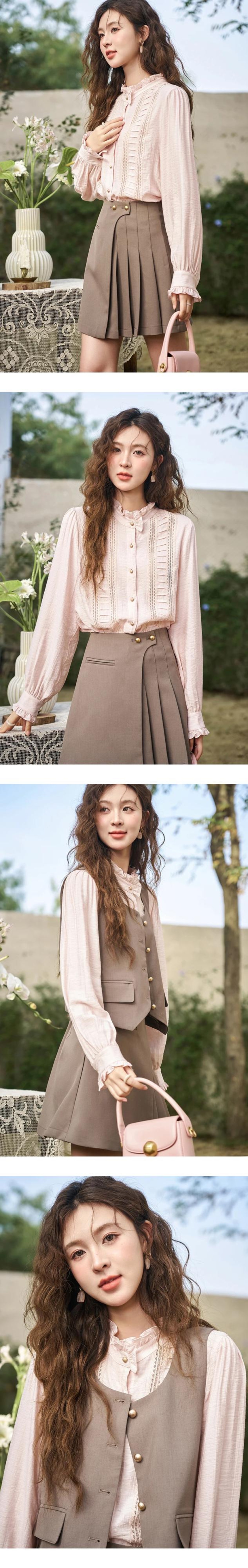 送料無料 MISHOW プレッピースタイルスカートセット単品 2024 春 ベスト ショート O ネックジャケット ファンガスエッジシャツ ハーフプリーツスカート MXD12W0300 スプリング 春物 Oネック AE12125556677685024591975 | 女性の為の通販サイト-fashion navi