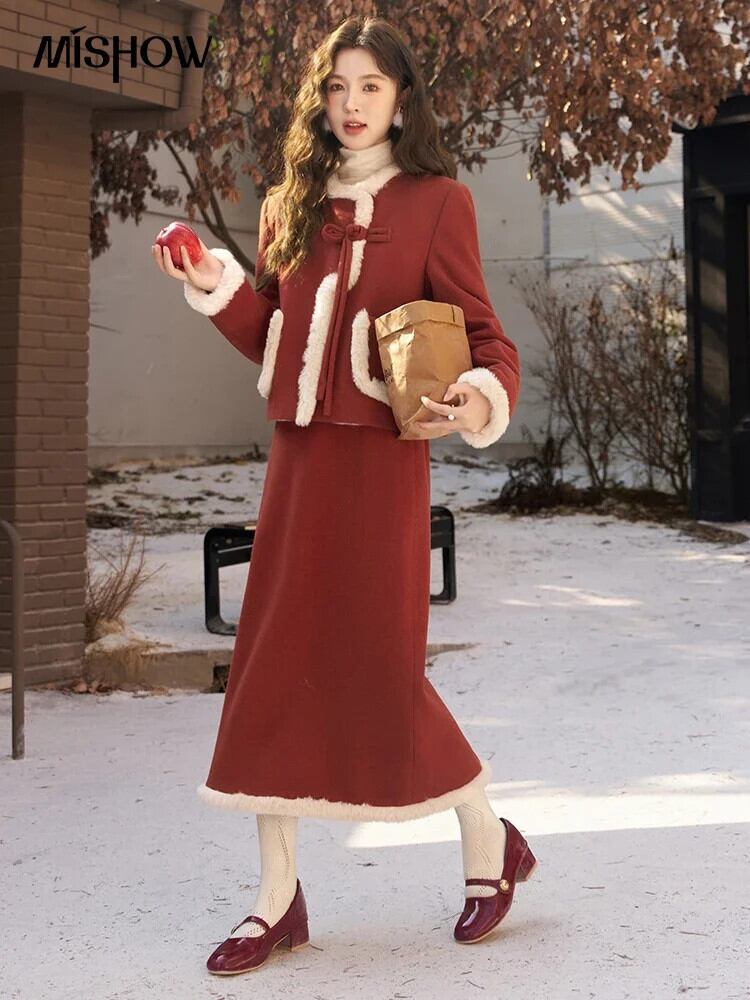 送料無料 MISHOW 中国風セット女性 2 点ダウンジャケットスリットロングスカート 2 点セット年 MXC57Y0028 AE12125556677686591318628