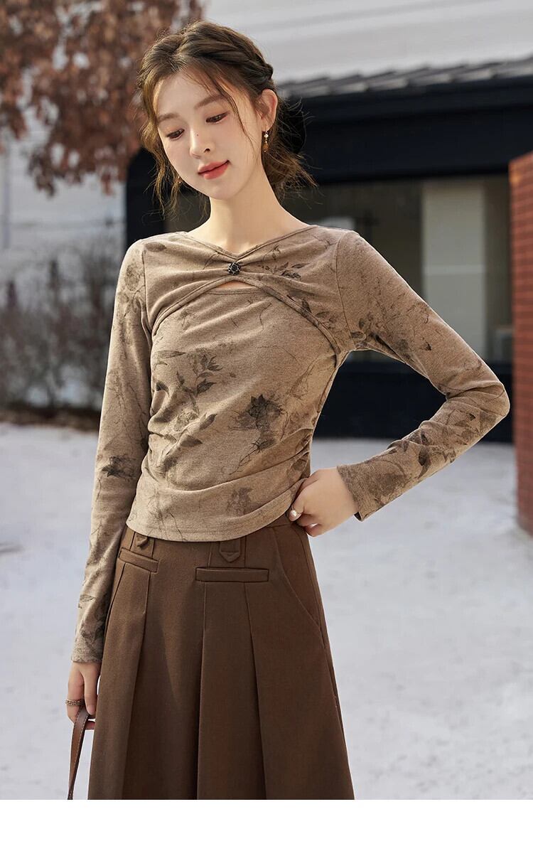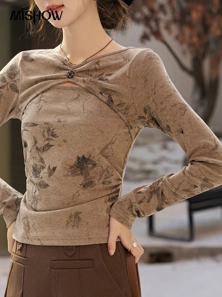 送料無料 MISHOW プリント長袖ニットトップ女性秋冬ニット気質女性スリム底シャツセーター女性 MXC58X1326 ロング オータム 秋物 ウィンター 冬物 AE12125556677616261499328