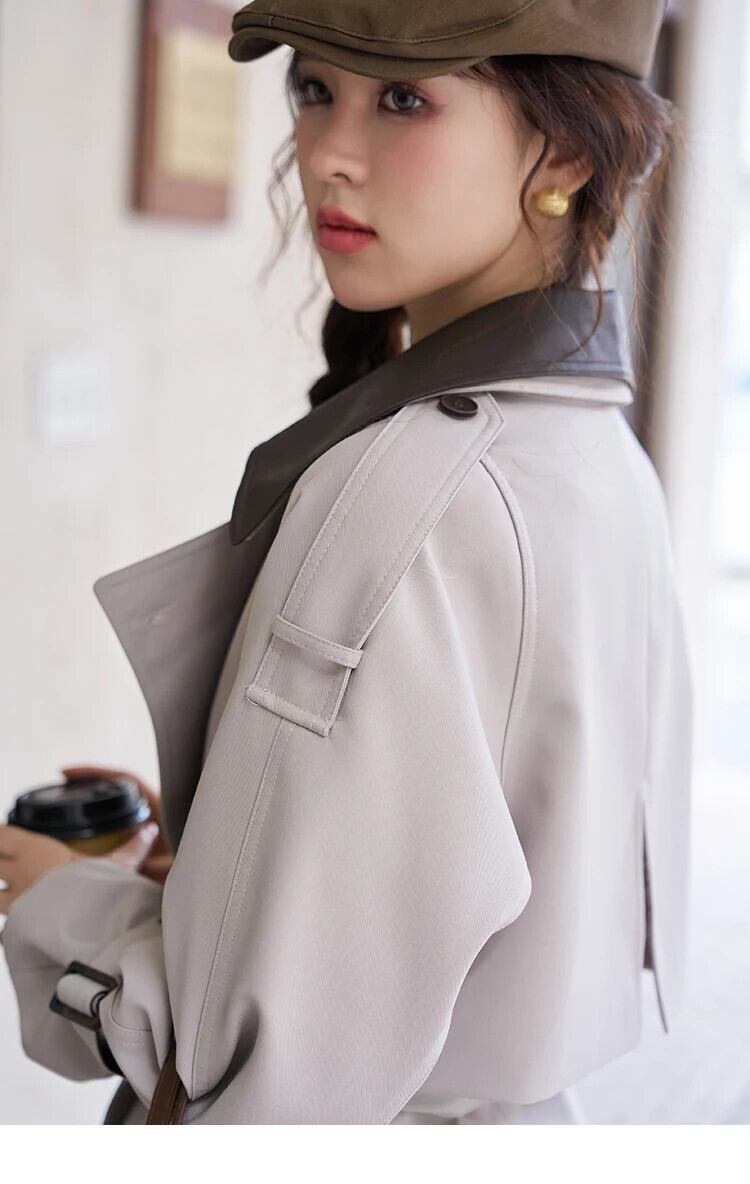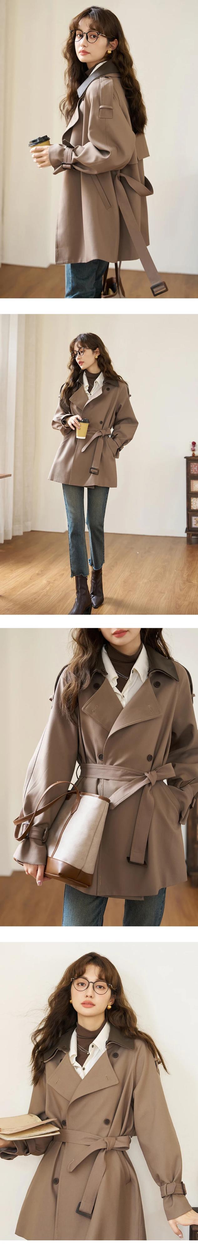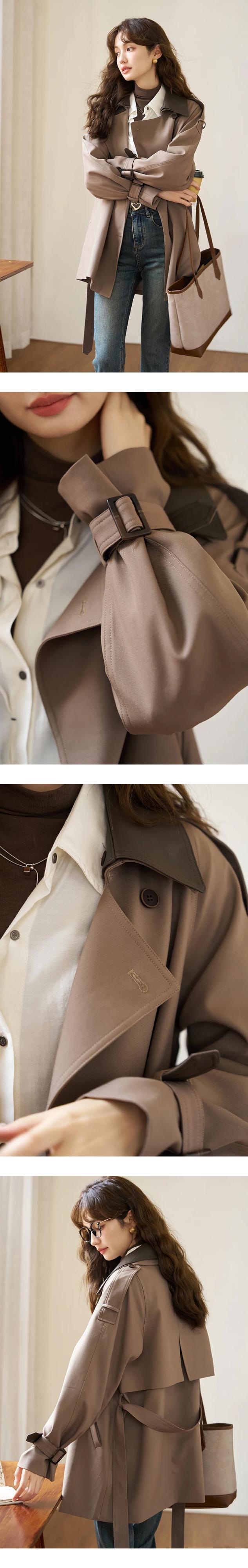 送料無料 MISHOW 女性のトレンチ 2023 秋取り外し可能な二重層レザー襟ソリッドルーズダブルブレスト A ラインコート MXC43W0079 オータム 秋物 Aライン ソリッドカラー AE12125556677619774540041