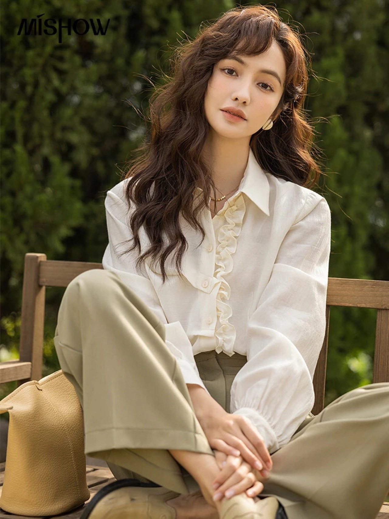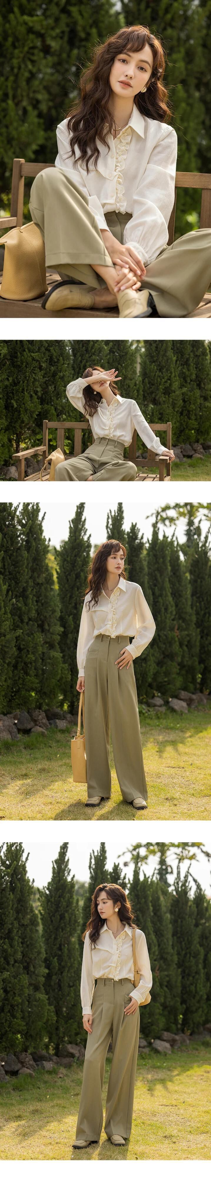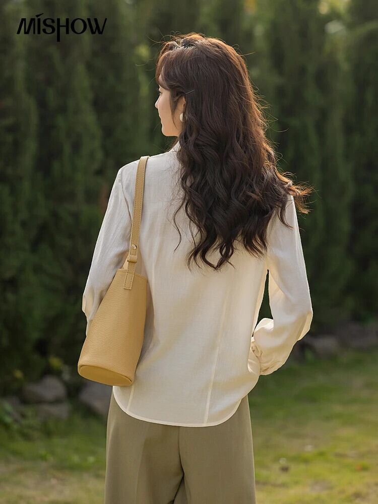 送料無料 MISHOW 女性のシャツ春 2023 フランスの気質トップスアガリックエッジ長袖シングルブレストシャツ MXC11C0714 ロング スプリング 春物 AE121255566776543617980