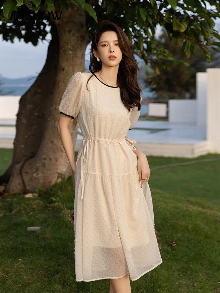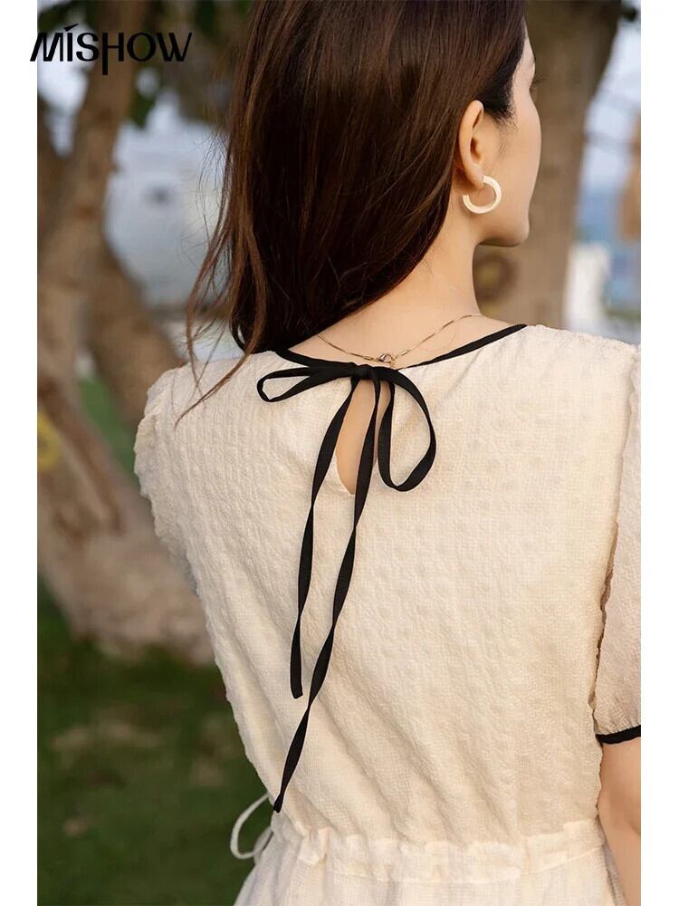 送料無料 MISHOW ドレスの女性 2023 夏フレンチジェントルソリッド Oneck プルオーバーウエストスリムミッドカーフドレス女性 Cloting MXB27L1025 サマー 夏物 ソリッドカラー AE12125556677665210082177