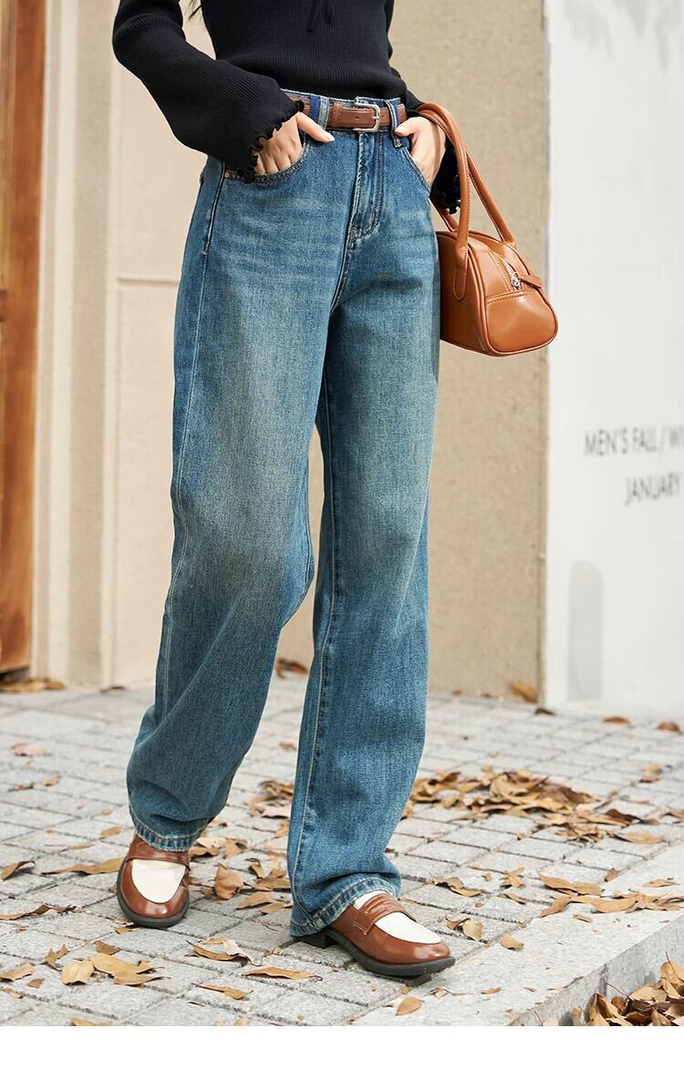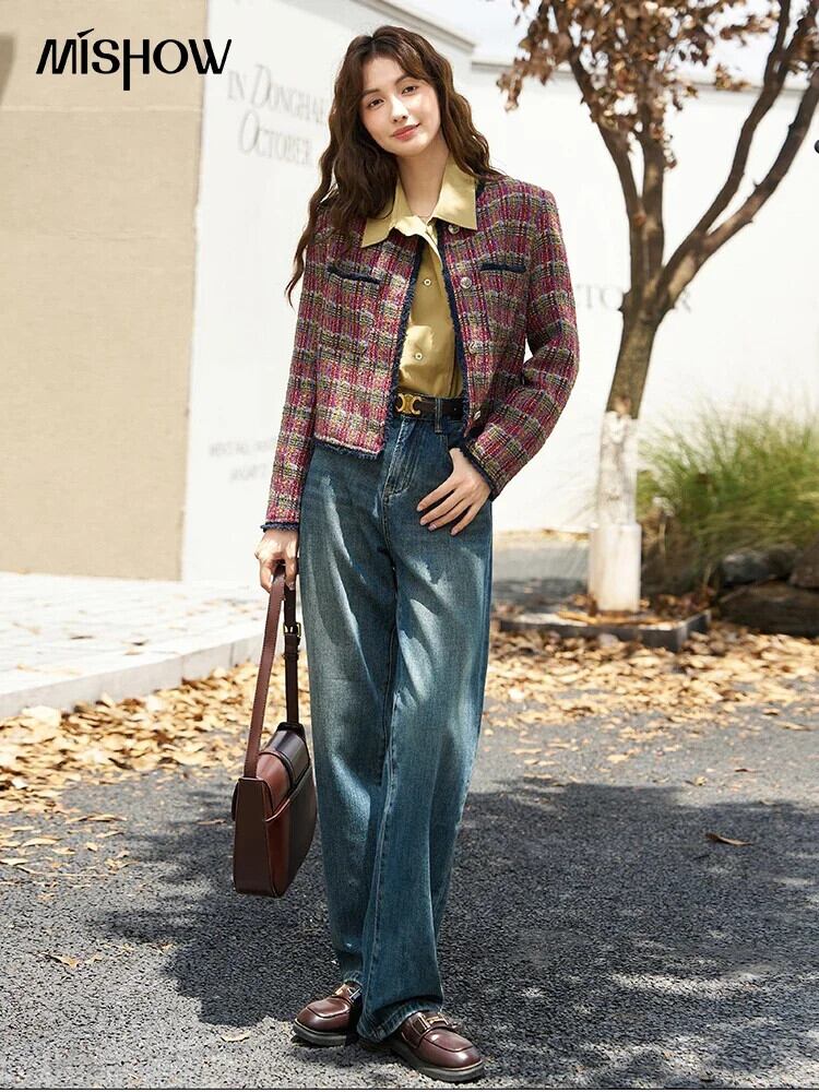 送料無料 MISHOW 女性のウエストだぶだぶのジーンズワイドレッグデニムパンツ女性春秋ストレートヴィンテージ女性のズボン MXC45K0496 スプリング 春物 オータム 秋物 ワイドパンツ ビンテージ AE12125556677674536279394