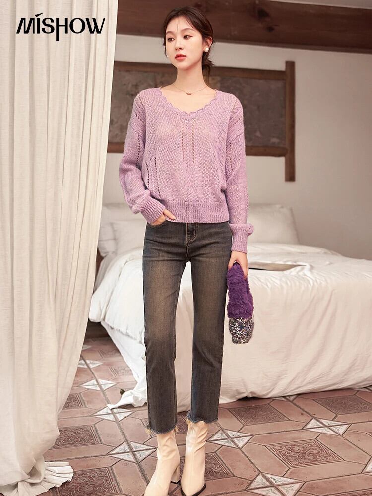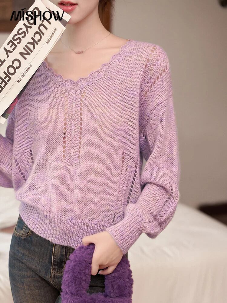 送料無料 MISHOW レディース 甘い薄手 V ネック中空アウトトップス 2023 秋ウール V ネックソリッド長袖トップオフィスレディ MXC41Z0157 ロング 大人ガーリー スウィート キュート カジュアル オータム 秋物 Vネック ソリッドカラー 会社 学校 通勤や通学にも AE12125556677613534678233