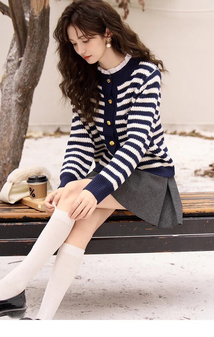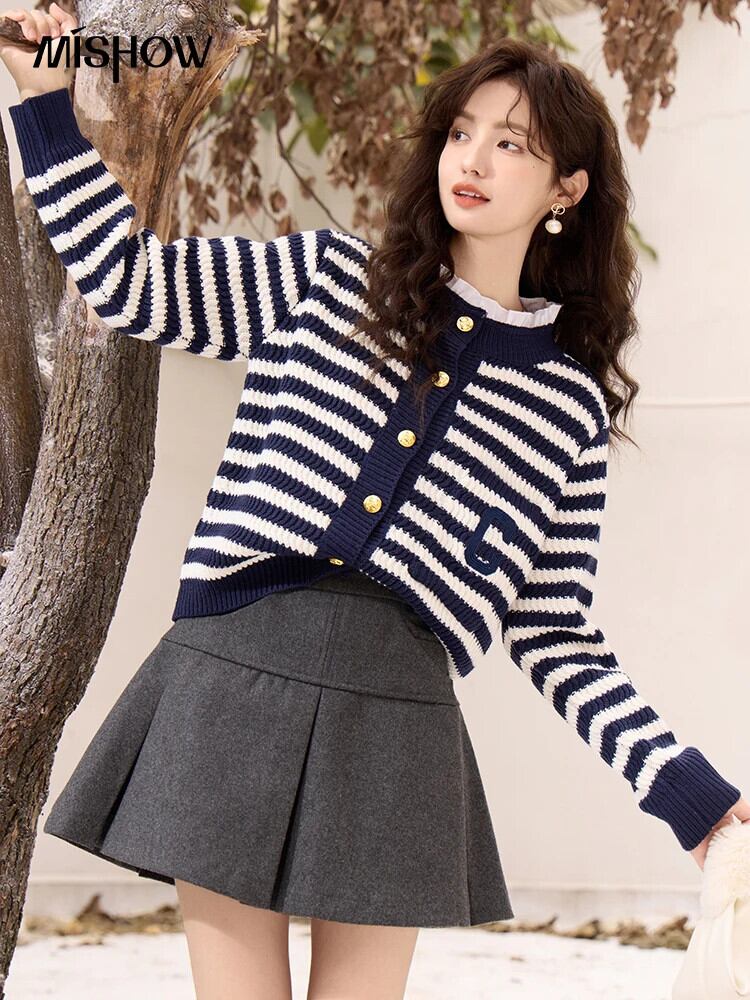 送料無料 MISHOW ストライプニットカーディガンセーター女性秋冬刺繍ジャンパーパッチワークレースニットトップ MXC58Z0482 オータム 秋物 ウィンター 冬物 AE12125556677648527649024