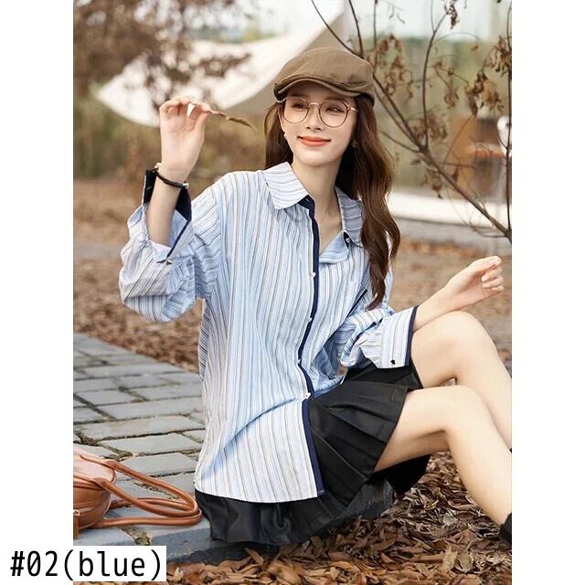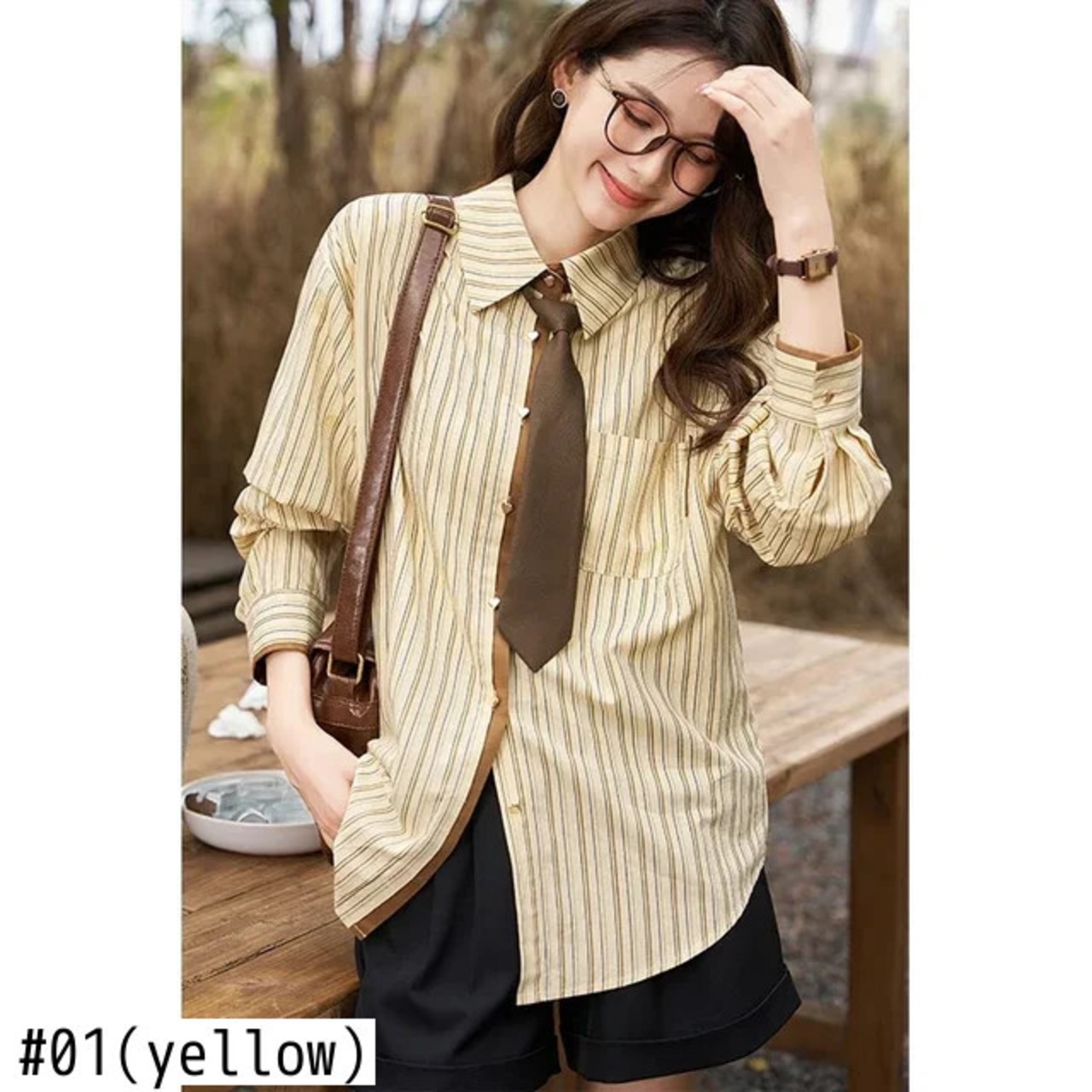 送料無料 MISHOW ヴィンテージストライプシャツ秋 2023 コットンシングルブレストポロネックラブボタンストレートシャツ MXC45C0102 オータム 秋物 Oネック ビンテージ AE12125556677669164593090