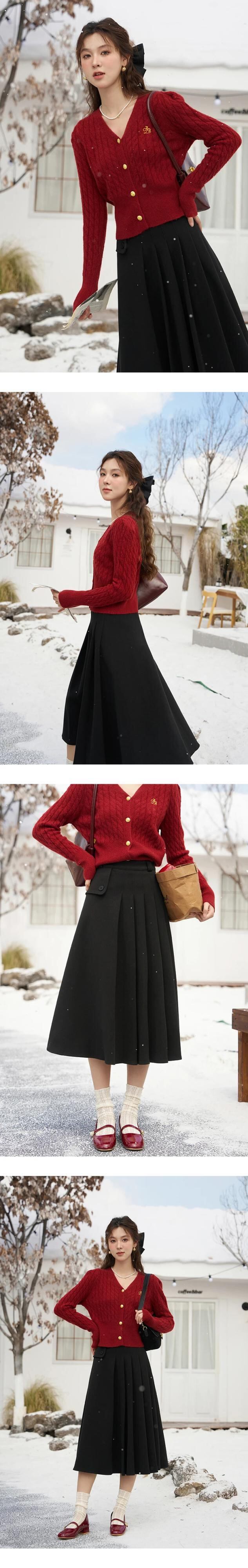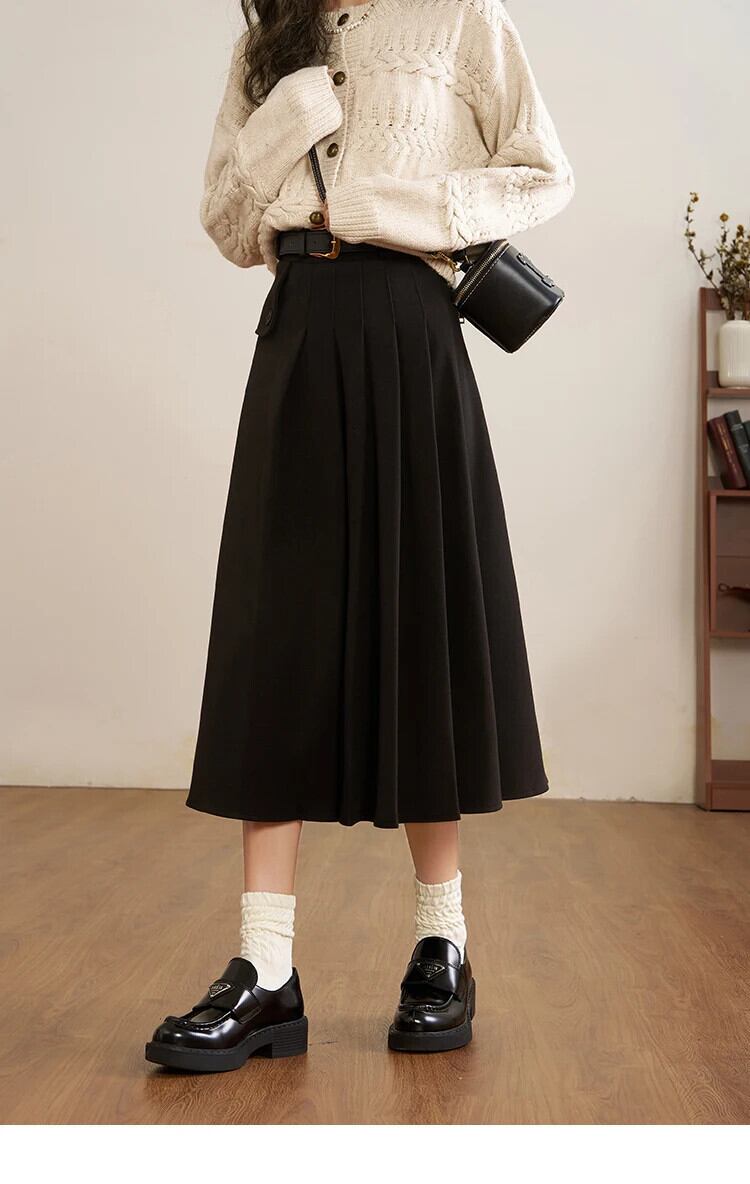 送料無料 MISHOW 冬ウールプリーツスカート女性 2023 ウエスト A ラインミディ黒スカートオフィス MXC56B0237 ブラック ウィンター 冬物 Aライン 会社 学校 通勤や通学にも AE12125556677632961642942