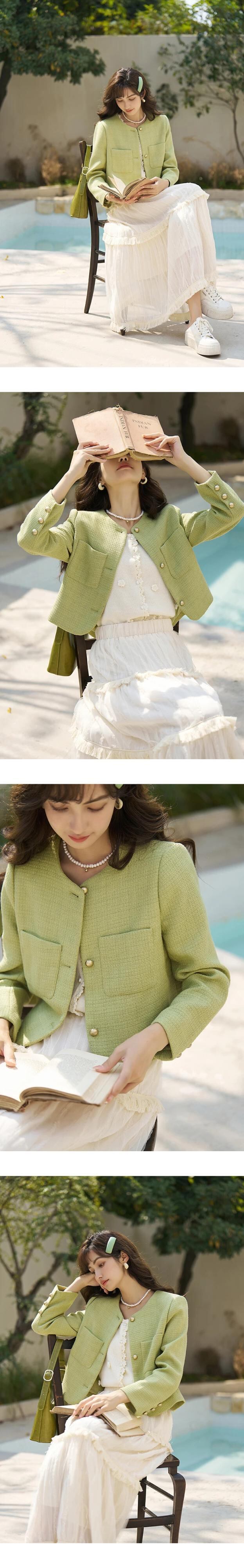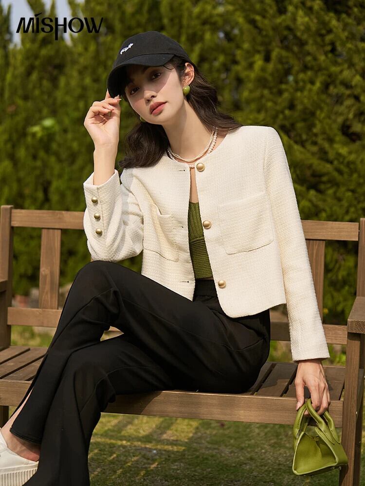 送料無料 MISHOW フレンチヴィンテージラウンドネックコート 2023 春夏スリム O ネックポケットシングルブレストコートオフィスレディ MXC15W0012 スプリング 春物 サマー 夏物 Oネック ビンテージ 会社 学校 通勤や通学にも AE121255566776777491329