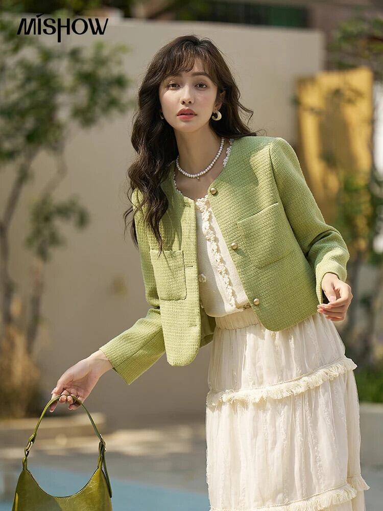 送料無料 MISHOW フレンチヴィンテージラウンドネックコート 2023 春夏スリム O ネックポケットシングルブレストコートオフィスレディ MXC15W0012 スプリング 春物 サマー 夏物 Oネック ビンテージ 会社 学校 通勤や通学にも AE121255566776777491329 | 女性の為の通販サイト-fashion navi