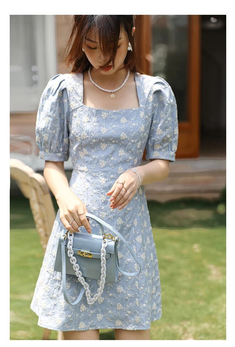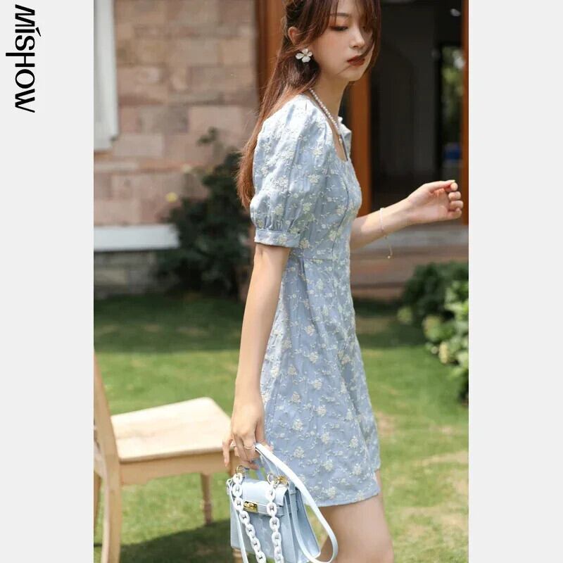 送料無料 MISHOW レディースドレス夏 2021 フレンチ Vestidos 花パフ半袖刺繍 A ラインミニドレス MXA23L0130 ショート ハーフスリーブ サマー 夏物 花柄 Aライン AE12125556677673716351227