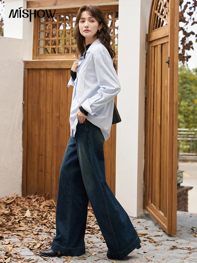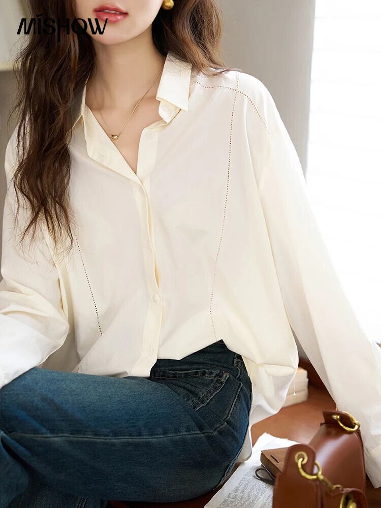 送料無料 MISHOW レディース シャツ 多用途 秋 シングルブレスト 中空パネル ポロネック ソリッド シャツ MXC41C0097 オータム 秋物 ソリッドカラー AE12125556677641887072546