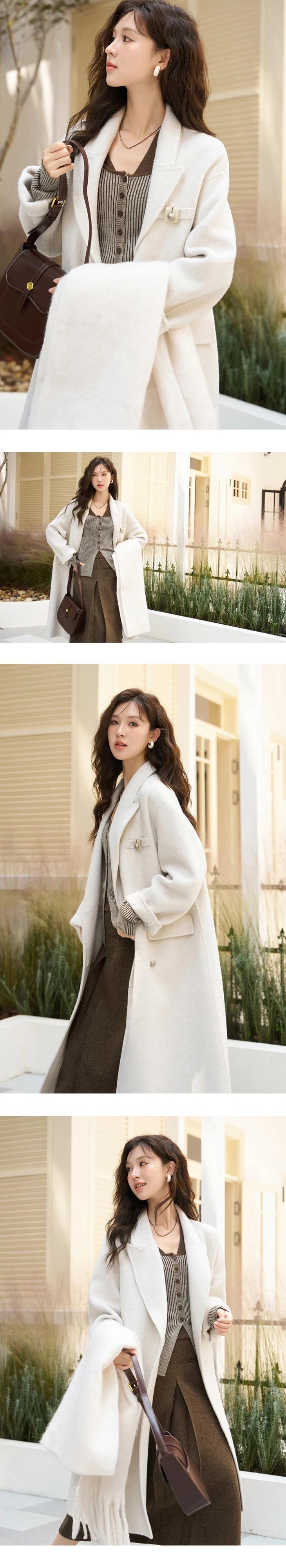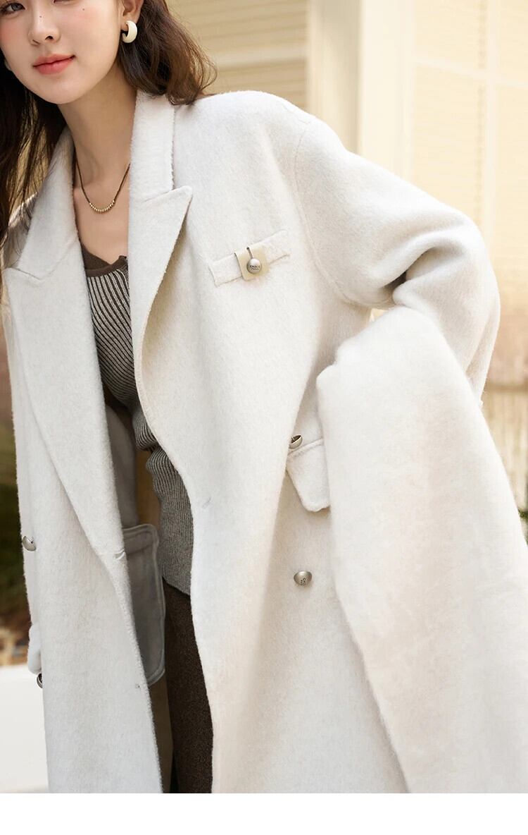 送料無料 MISHOW 両面ウールコートの女性 2023 冬ソリッドダブルブレストルーズアウター純粋に手縫い MXC47W0150 ウィンター 冬物 ソリッドカラー AE12125556677623033049218