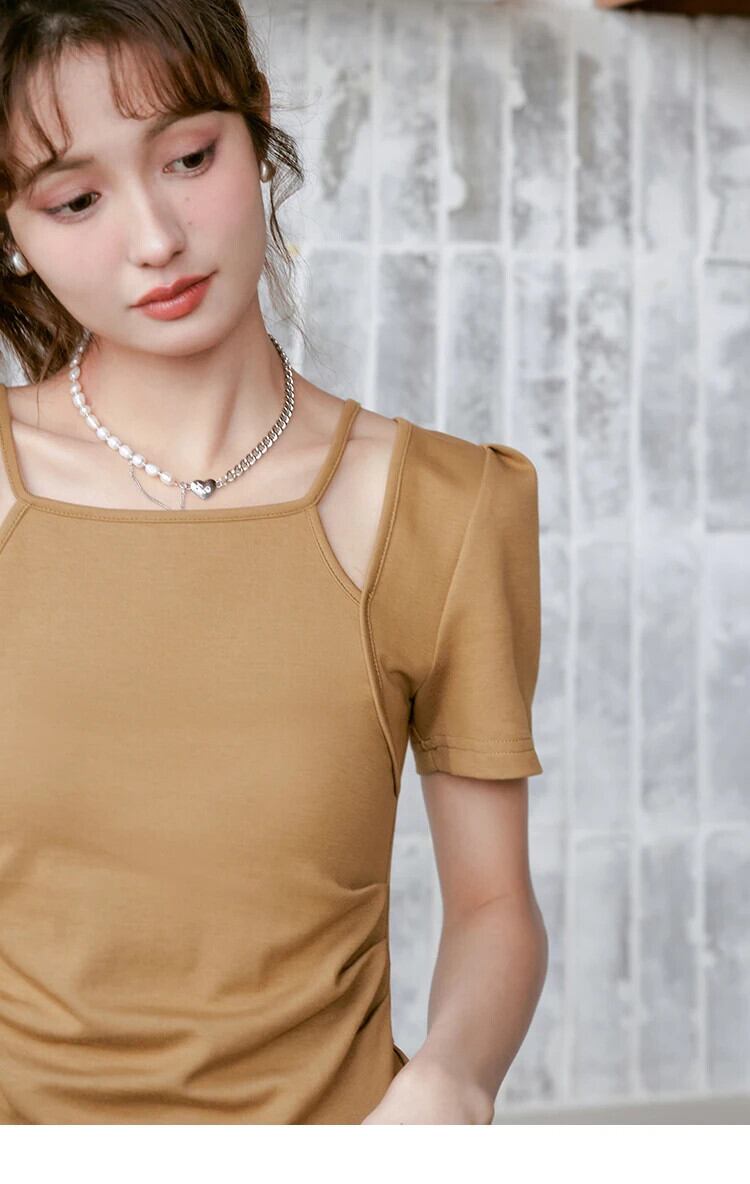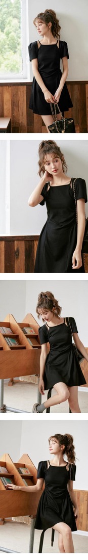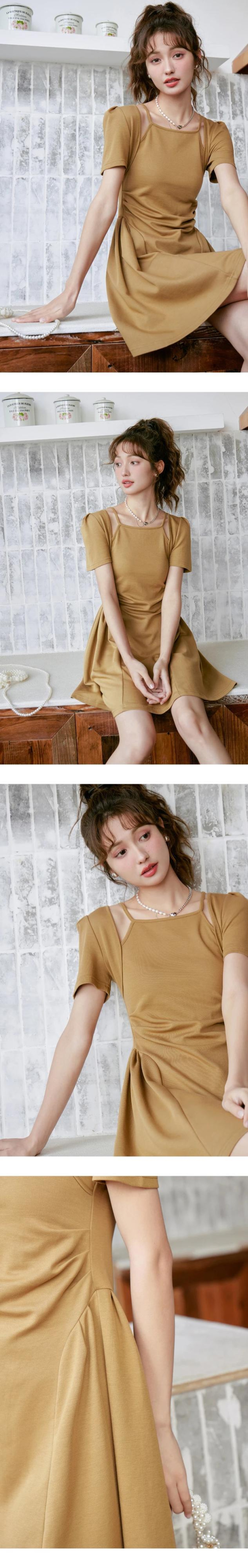 送料無料 MISHOW 2023 夏中空アウト偽ツーピースウエストドレス A ラインスクエアカラー固体膝丈ドレス MXC39L1581 サマー 夏物 Aライン ソリッドカラー スクウェア AE12125556677615417335515