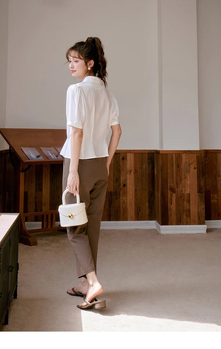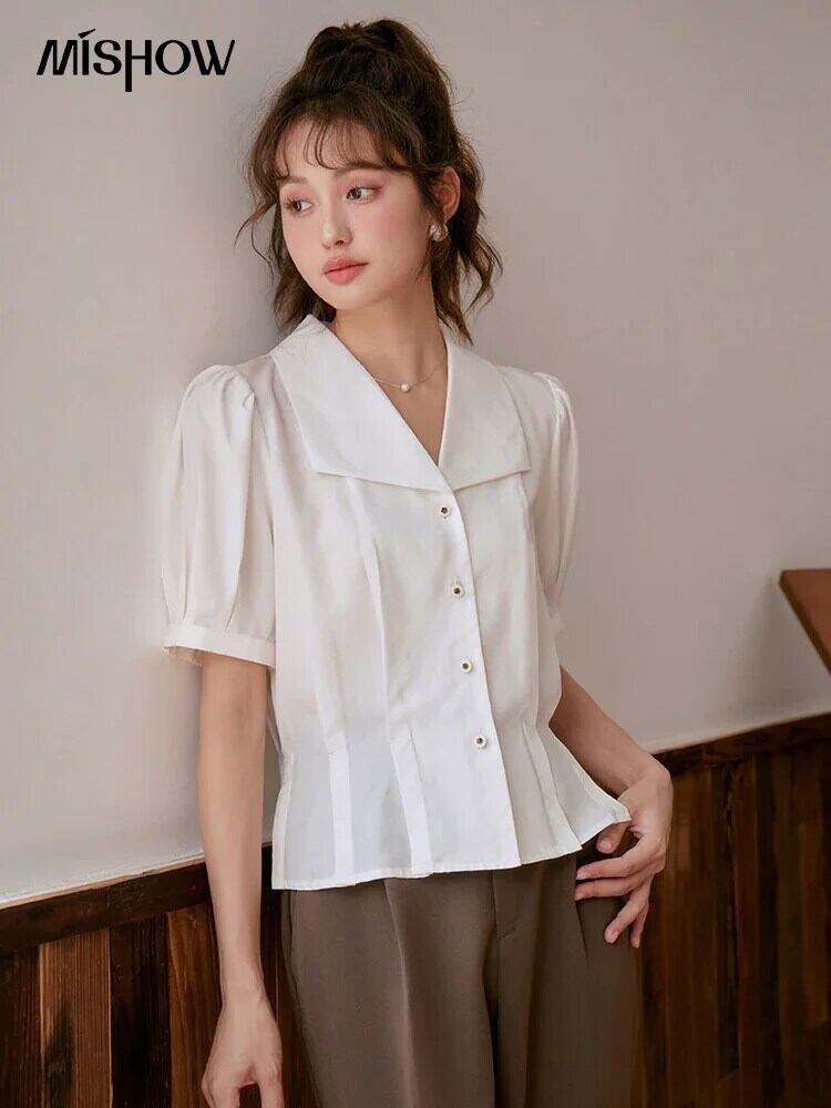 送料無料 MISHOW バブルスリーブシックなフレンチシャツの女性 2023 夏半袖シングルブレストターンダウン襟固体トップス MXC39C0069 ショート ハーフスリーブ サマー 夏物 ソリッドカラー AE1212555667766513964192