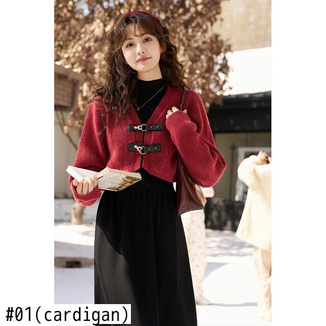 送料無料 MISHOW ニットドレスセット女性秋冬ショートセーターカーディガン黒ミディ A ラインウエストドレス 2 個セット MXC59L1646 ブラック オータム 秋物 ウィンター 冬物 Aライン AE12125556677653941514650