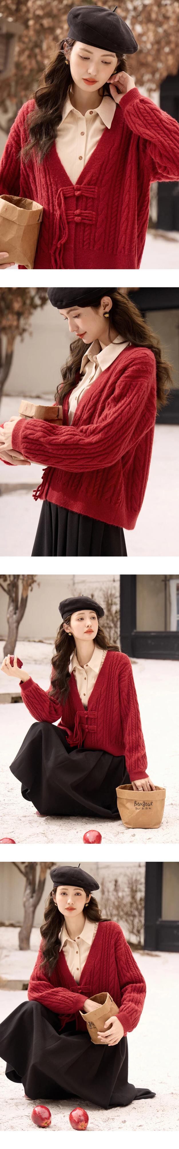 送料無料 MISHOW V ネックニットセーターカーディガン女性秋冬年ニットルーズツイストジャンパートップ女性 MXC58Z0479 オータム 秋物 ウィンター 冬物 Vネック AE12125556677614514113114