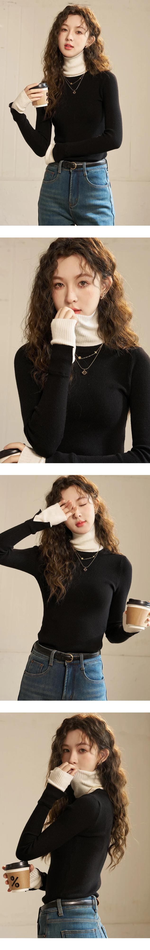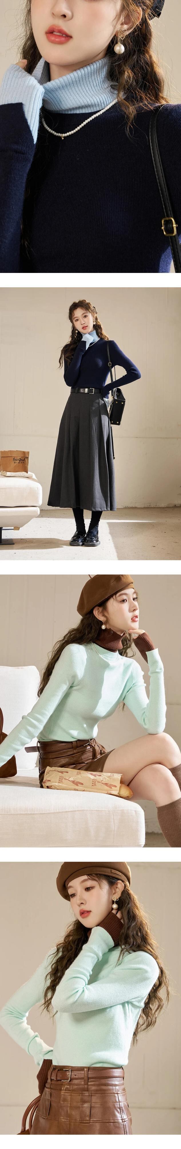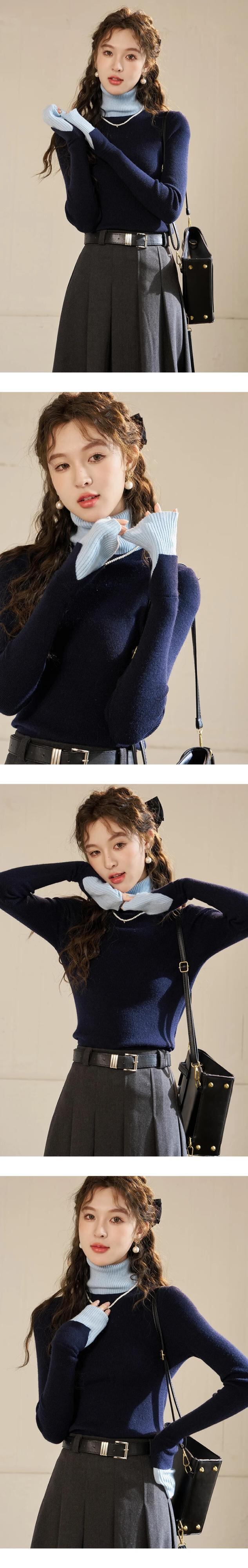 送料無料 MISHOW ニット女性タートルネックコントラストセーターニットボトミングシャツ冬スリムインナーフェイクツーピーストップ MXC58Z0474 ウィンター 冬物 AE12125556677637269079407