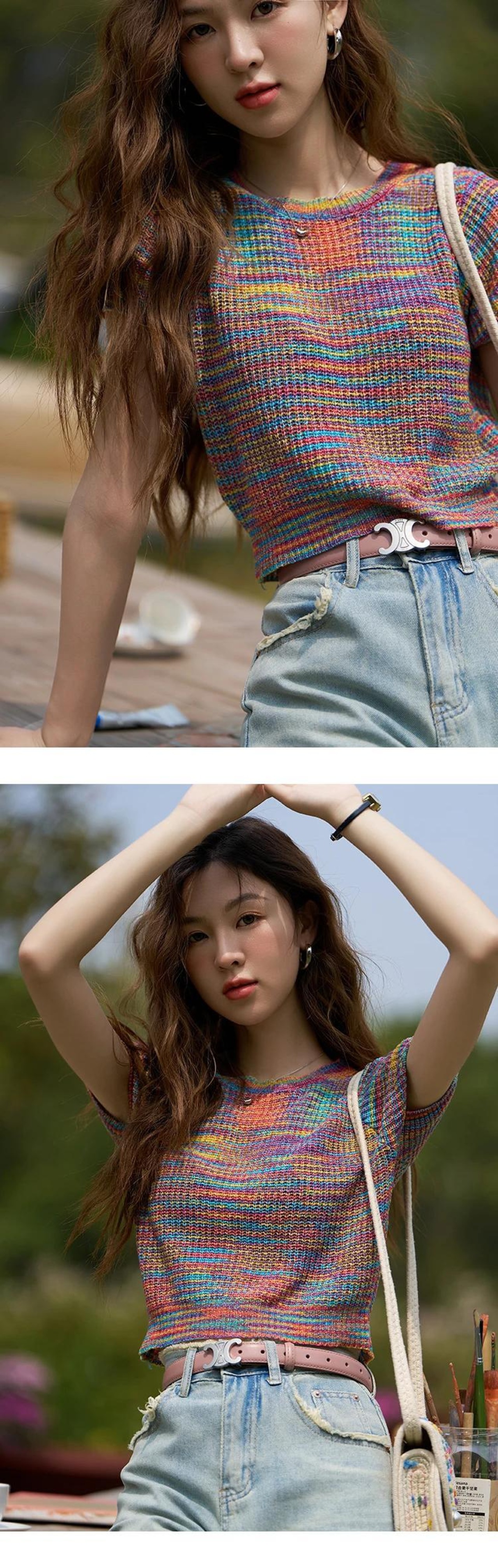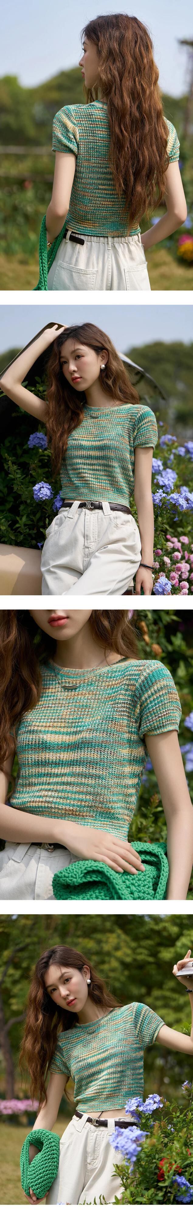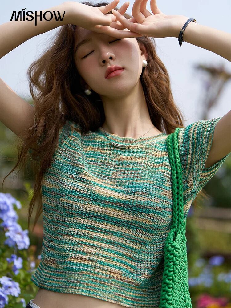 送料無料 MISHOW カラフルなストライプ Tシャツ女性 2023 夏甘い半袖 O ネックニットトップスオフィスレディ MXC33Z0043 ショート ハーフスリーブ 大人ガーリー スウィート キュート カジュアル サマー 夏物 Oネック 会社 学校 通勤や通学にも AE12125556677614039688091