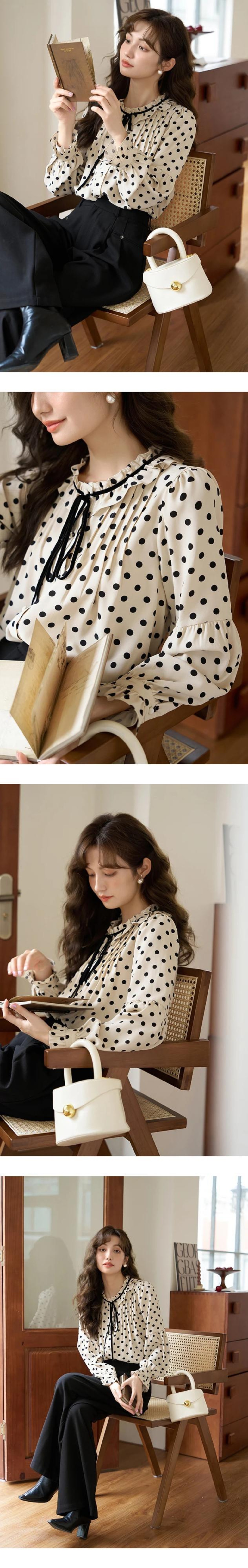 送料無料 MISHOW フレンチレトロポルカドットシャツ女性 2023 秋フリルネックレースアップシングルブレストトップス MXC44C0104 オータム 秋物 AE12125556677636425423283 | 女性の為の通販サイト-fashion navi