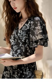 送料無料 MISHOW 黒花柄ドレス夏 2023 レトロ V ネックバタフライスリーブウエストスリム膝丈ドレスオフィスレディ MXC35L1330 ブラック サマー 夏物 Vネック 会社 学校 通勤や通学にも AE1212555667768049579644 | 女性の為の通販サイト-fashion navi