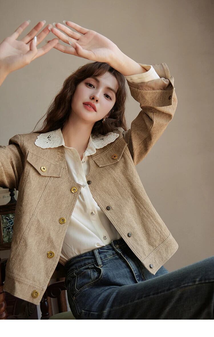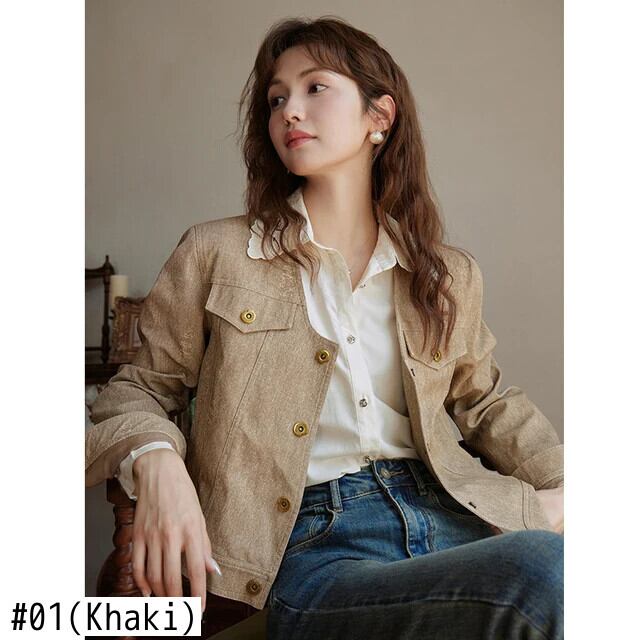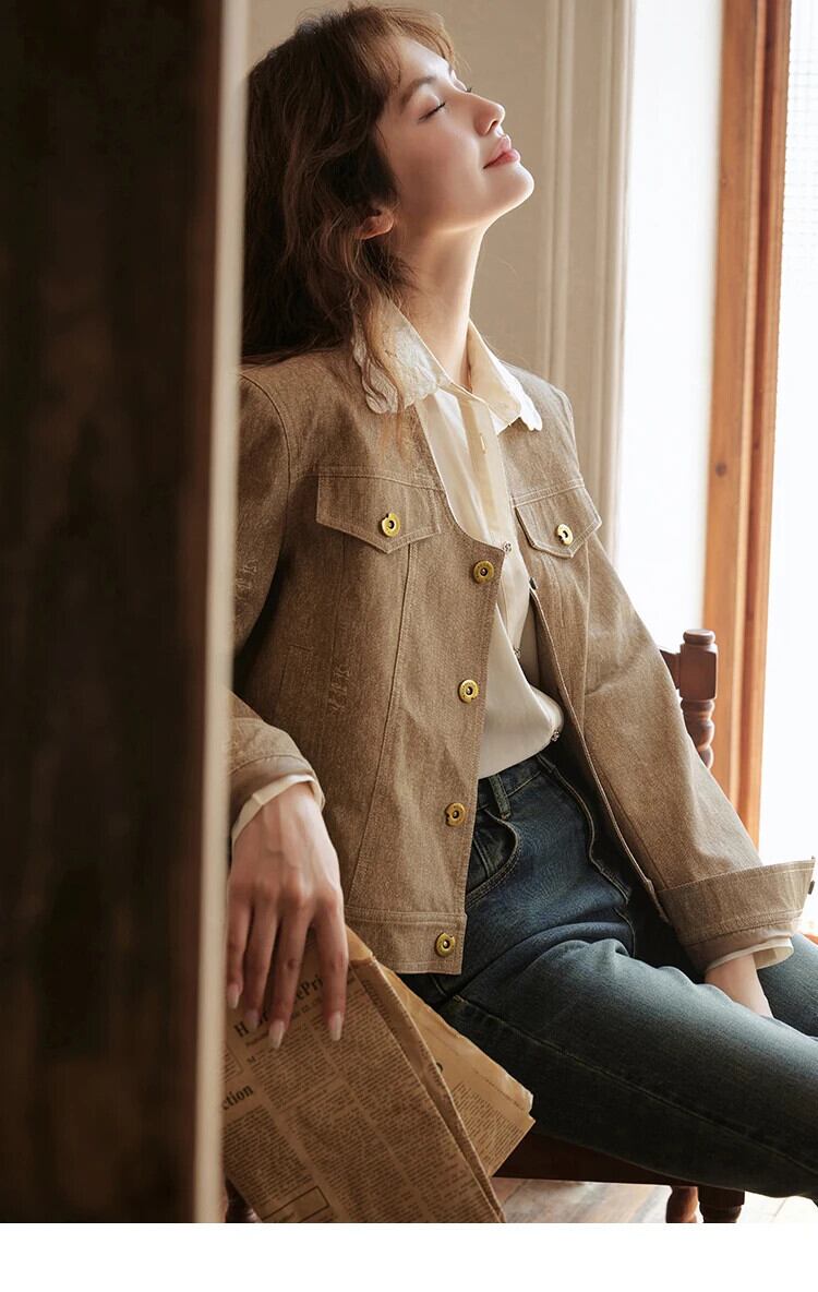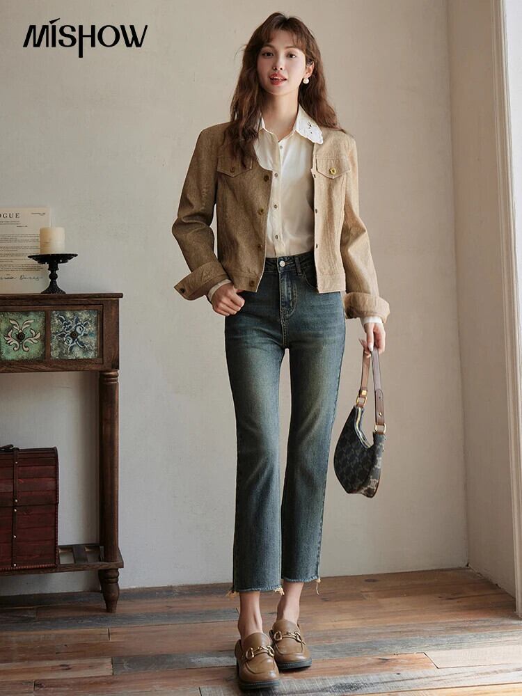 送料無料 MISHOW デニムレザーショートジャケット女性秋 2023 レトロボタンポケットストリートコート MXC41W0054 オータム 秋物 AE12125556677693913927648