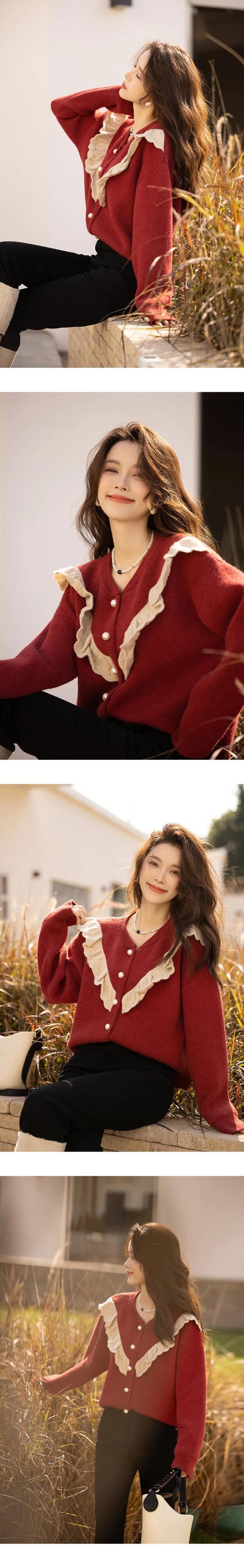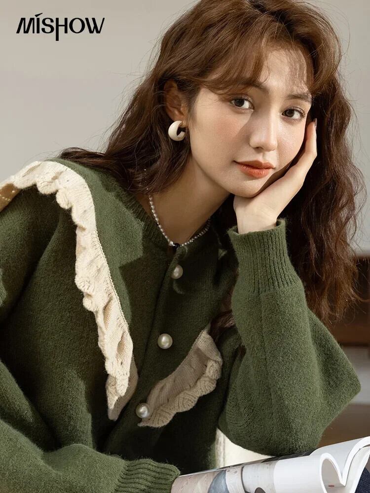 送料無料 MISHOW セーターカーディガン女性フリルニット秋冬シングルブレストニットトップスジャンパー MXB46Z1111 オータム 秋物 ウィンター 冬物 AE12125556677623890010062