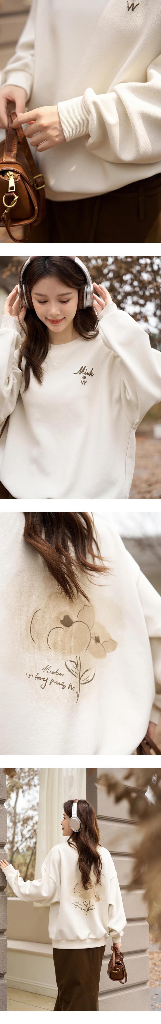 送料無料 MISHOW プルオーバー薄手トップ 2023 秋 -肩袖桃の花プリントバックルーズ刺繍 O ネックトップス MXC44V0012 オータム 秋物 Oネック AE12125556677618144811302