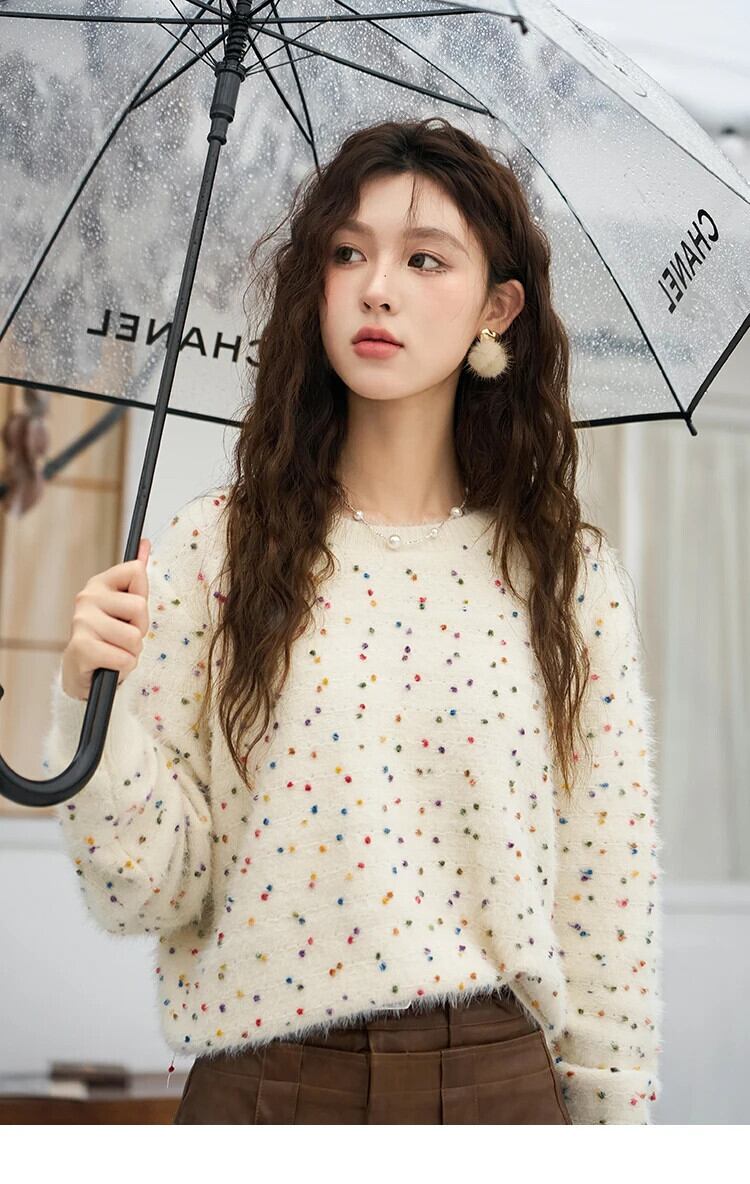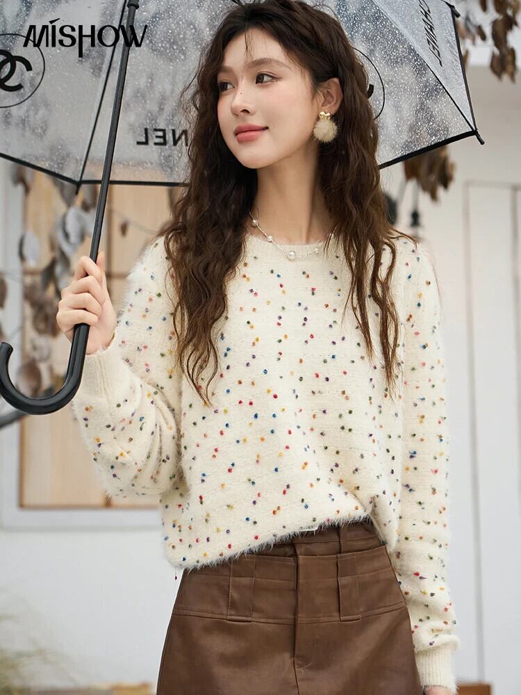 送料無料 MISHOW モヘアドットセーター女性 2023 秋冬ジャンパークルーネック甘いニットプルオーバートップ MXC52Z0332 オータム 秋物 ウィンター 冬物 AE12125556677669018917401