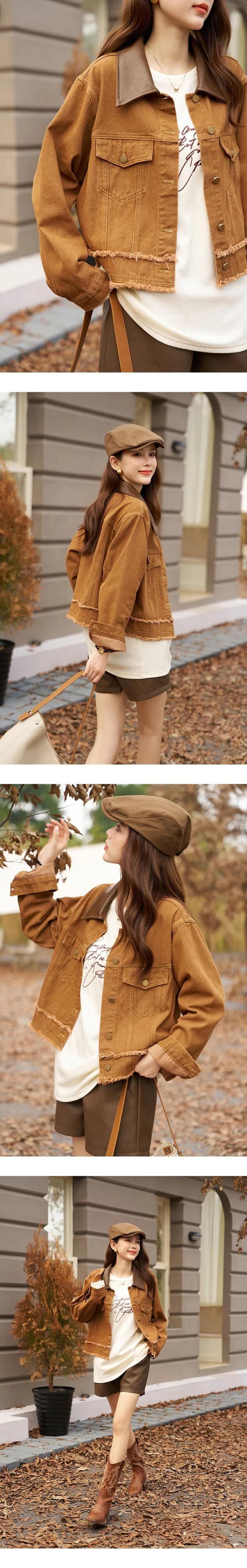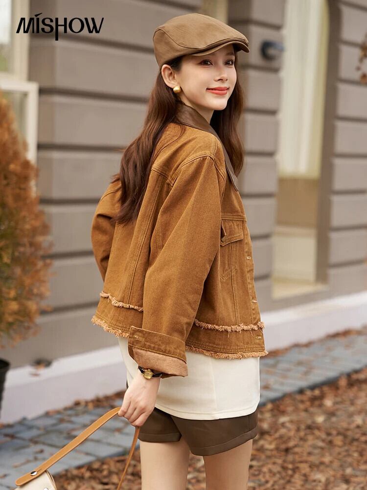 送料無料 MISHOW レディースヴィンテージデニムジャケットボタンダウンコート 2023 秋ラペル長袖ポケットクロップドジャケットソフトトップス MXC45W0047 ロング オータム 秋物 ビンテージ AE12125556677657224918856
