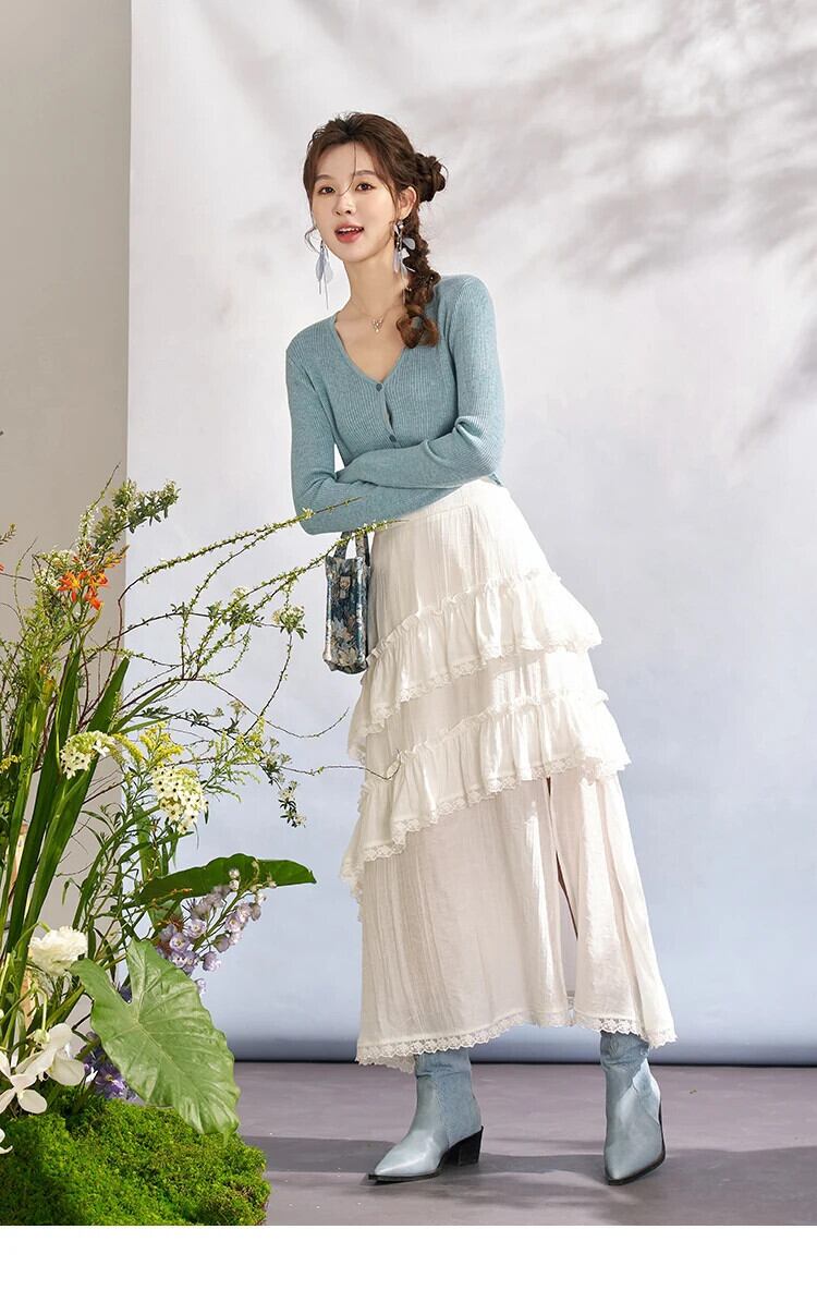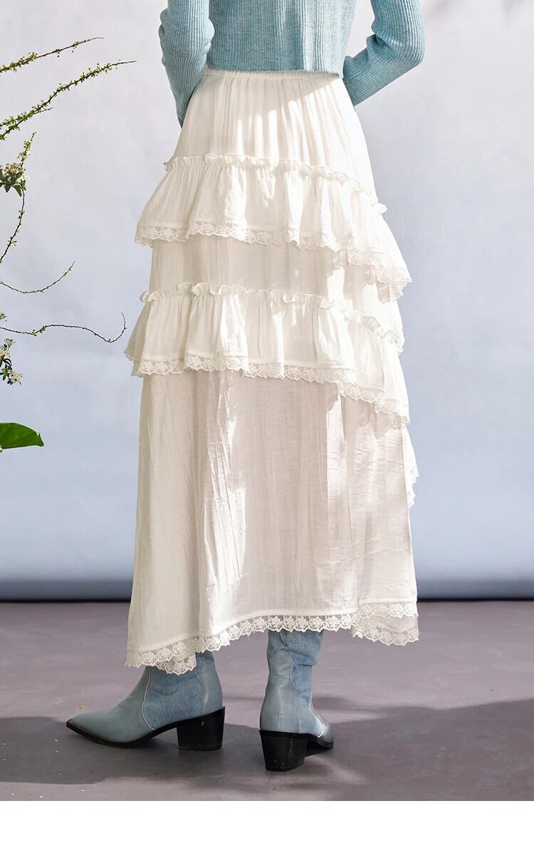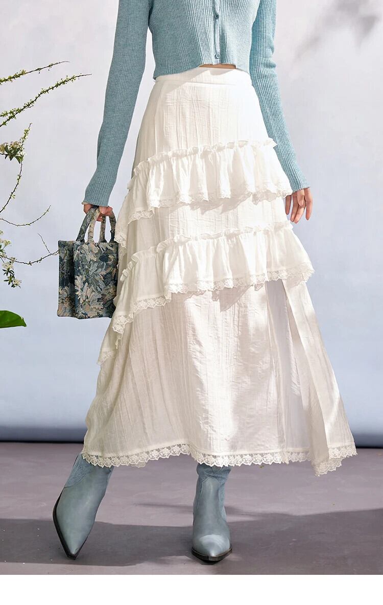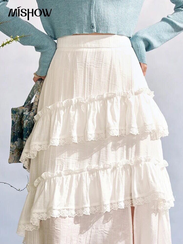 送料無料 MISHOW レディース ホワイト レース パッチワーク フリル ケーキ スカート 2024 春 ミディ ルーズ A ライン スカート MXD11B0202 スプリング 春物 Aライン AE12125556677666187791894