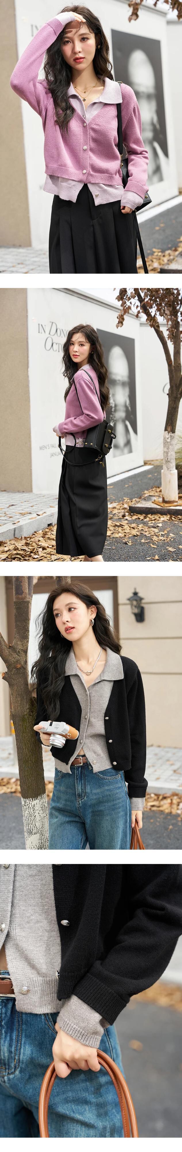 送料無料 MISHOW 女性のフェイクツーピースカーディガンセーター 2023 秋ニットラペルパッチワークメタルボタンヴィンテージトップス MXC44Z0145 オータム 秋物 ビンテージ AE12125556677680270755273
