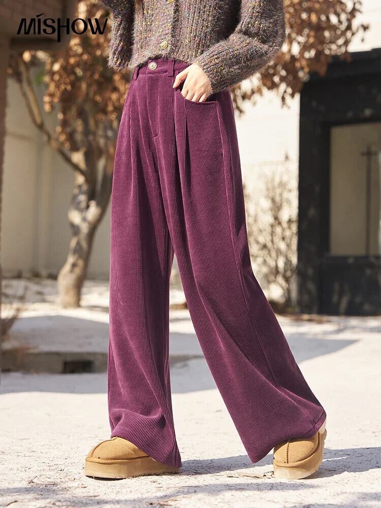 送料無料 MISHOW パープルコーデュロイワイドレッグパンツ女性 2023 秋冬ヴィンテージだぶだぶウエスト太いパンツズボン MXC57K0520 オータム 秋物 ウィンター 冬物 ワイドパンツ ビンテージ AE12125556677612968927309 | 女性の為の通販サイト-fashion navi