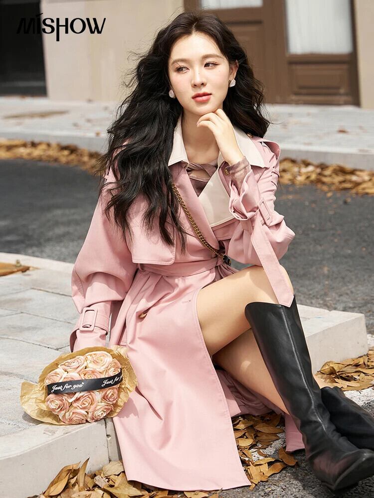 送料無料 MISHOW 女性のダブルブレスト取り外し可能なラペルパッチワークトレンチ 2023 秋コートルーズベルトオーバーコート MXC47W0084 オータム 秋物 ハーネス AE12125556677637950780593
