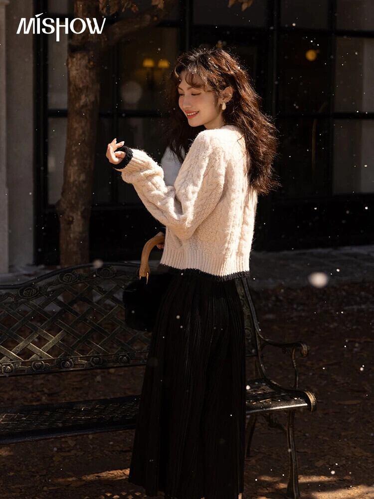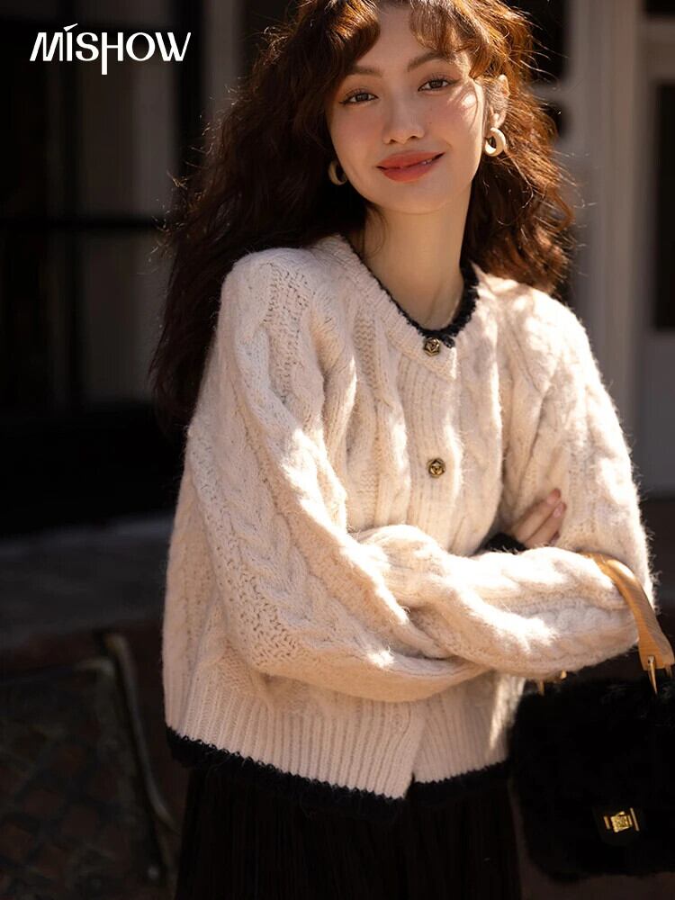 送料無料 MISHOW セーター女性冬ショート厚みニットカーディガンルーズソフト O ネックニットニット MXB44Z1028 ウィンター 冬物 Oネック AE12125556677647743316350