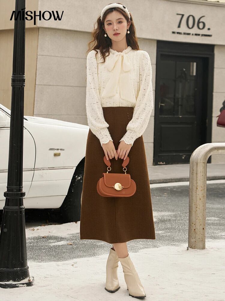送料無料 MISHOW ビショップ長袖レースシャツ女性 2023 冬フレンチ蝶ネクタイプリーツブラウスオフィスレディトップス MXC55X1369 ロング リボン ウィンター 冬物 会社 学校 通勤や通学にも AE1212555667765988337472 | 女性の為の通販サイト-fashion navi