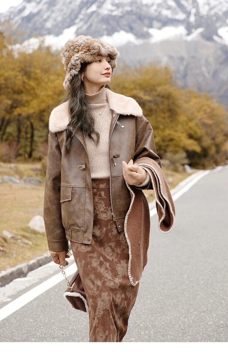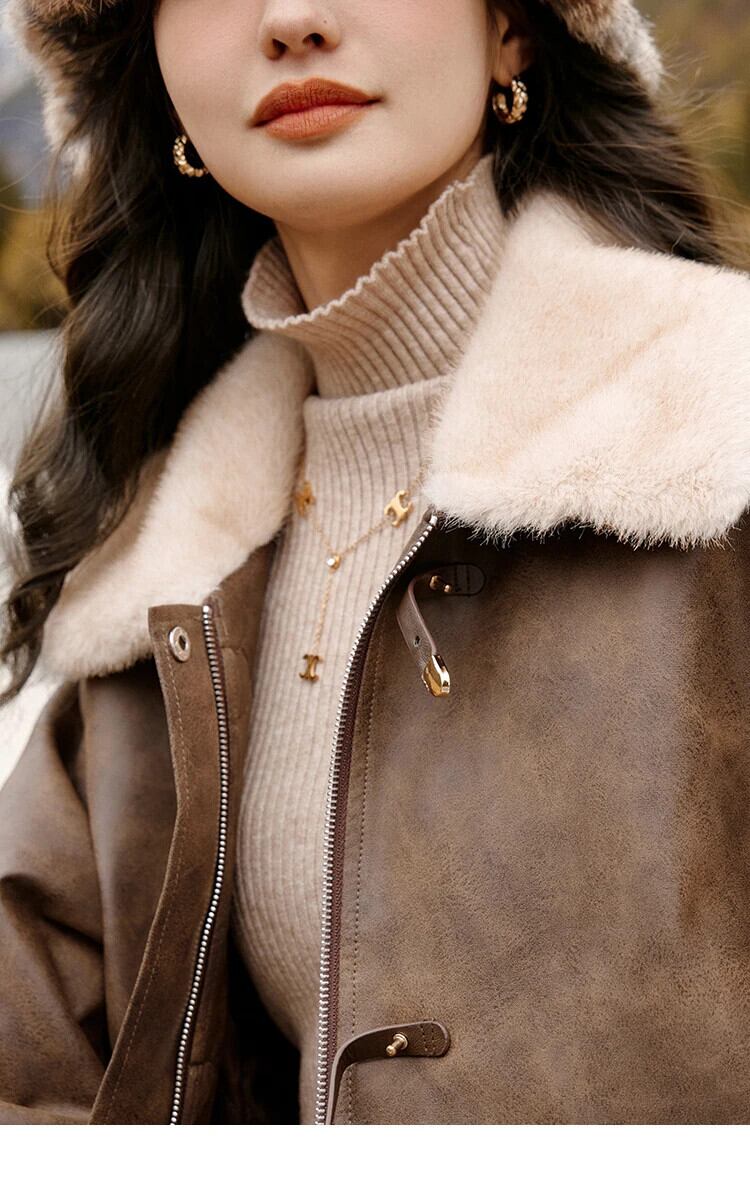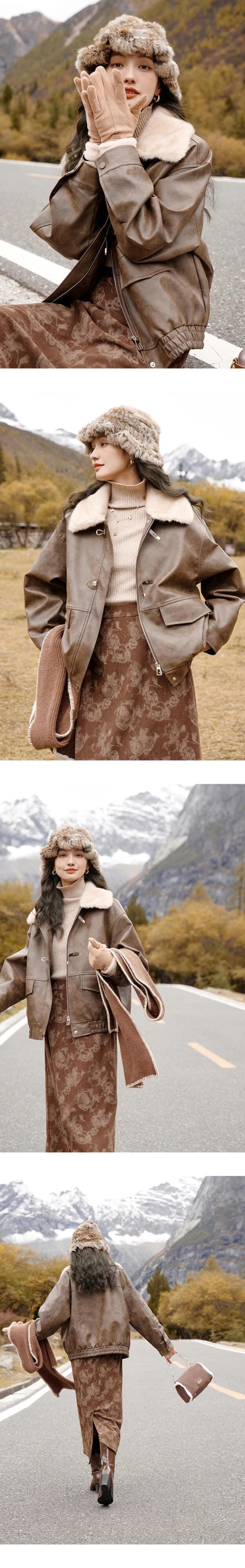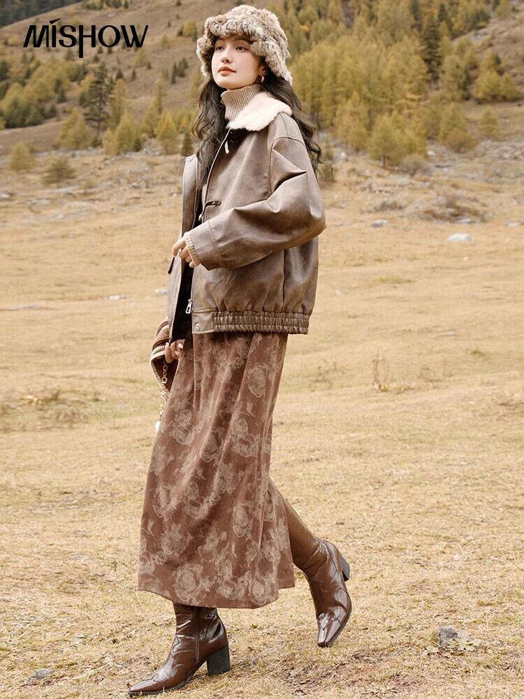 送料無料 MISHOW オートバイ作物レザージャケットの女性 2023 冬緩い厚く暖かいストリートジャケットショートアウター MXC54W0183 ウィンター 冬物 AE12125556677637724356143