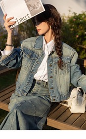 送料無料 MISHOW レディース デニム コート 春 秋 ヴィンテージ ルーズ シングルブレスト ショート トップス MXC11W0941 スプリング 春物 オータム 秋物 ビンテージ AE12125556677614668234586