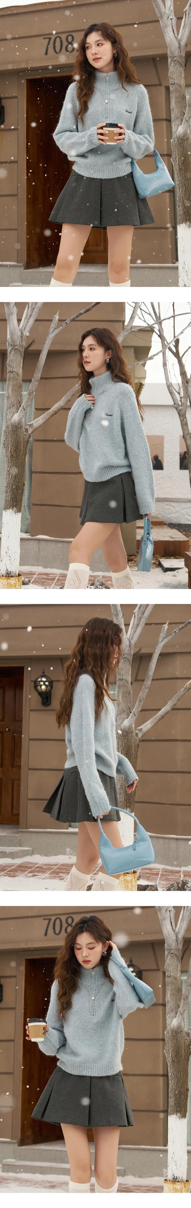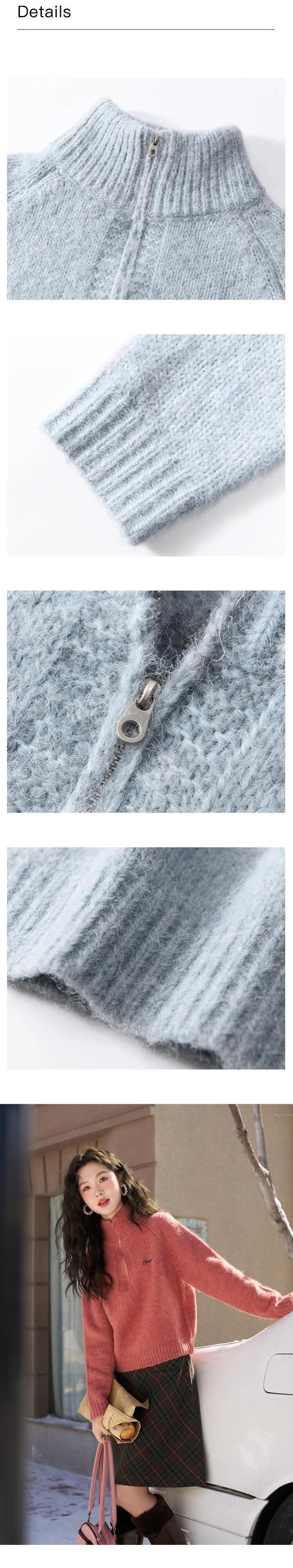 送料無料 MISHOW 秋冬モックネックセーター女性 2023 ルーズハーフジップセータープルオーバーニットジャンパートップ MXC55Z0418 オータム 秋物 ウィンター 冬物 AE12125556677647482909016