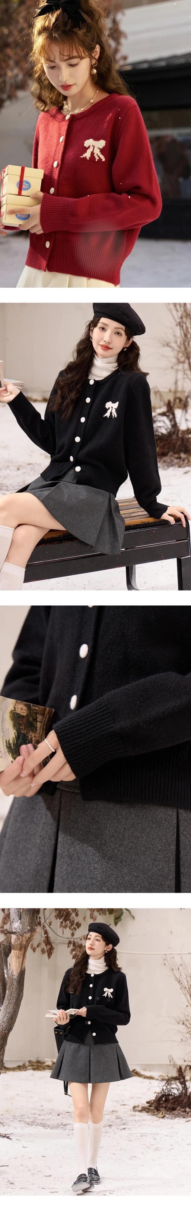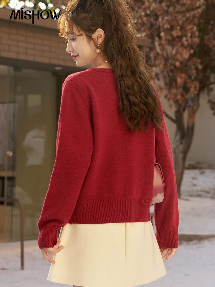 送料無料 MISHOW ラウンドネック暖かいセーターカーディガン女性の冬の刺繍セーター厚手ニットジャンパージャケット怠惰なスタイルトップ MXC58Z0473 レッド ウィンター 冬物 Oネック AE12125556677631055794835